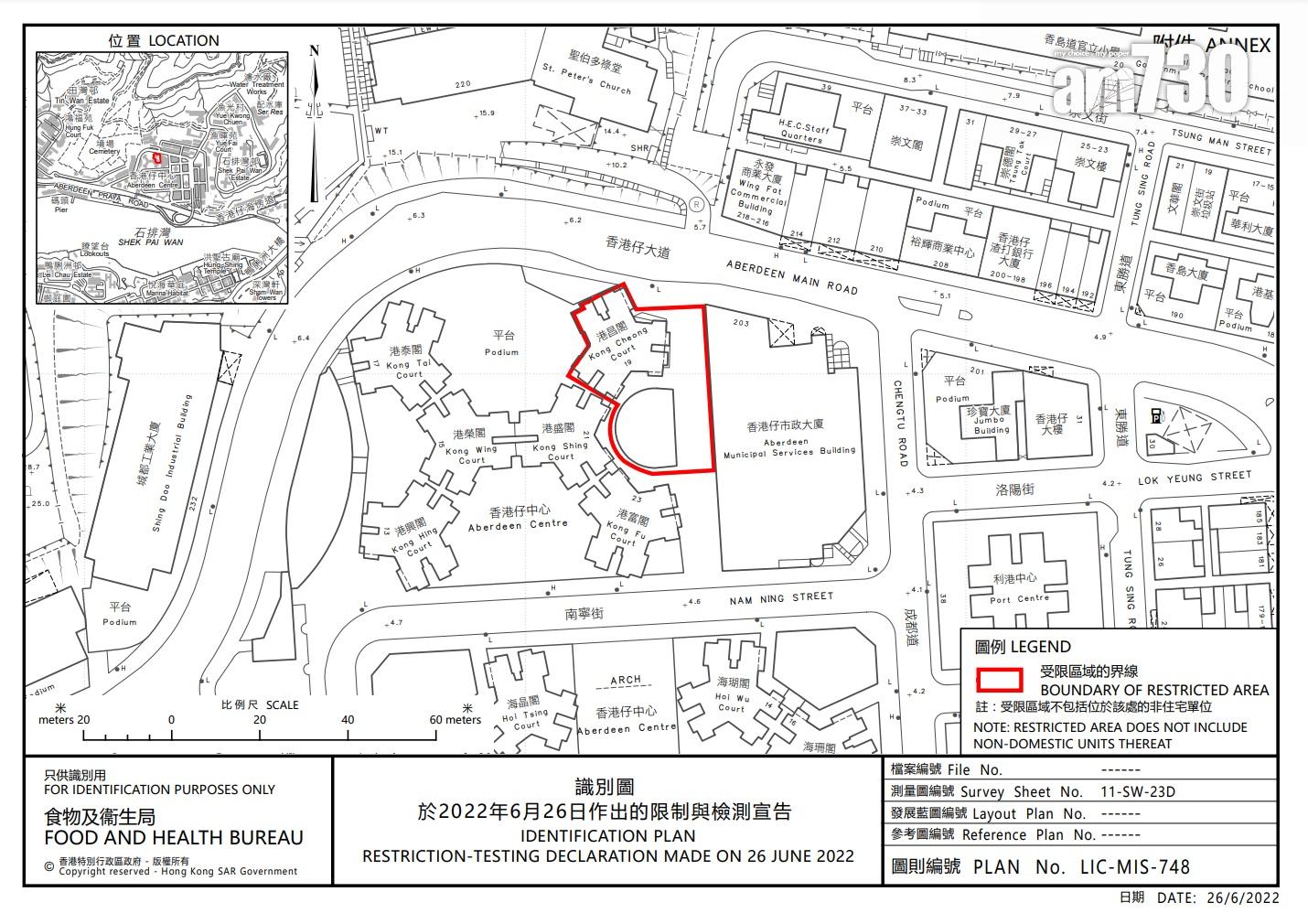 - 香港仔中心港昌閣:下午6時起圍封,居民需要於今晚11時前檢測,行動目標明日約上午11時完成