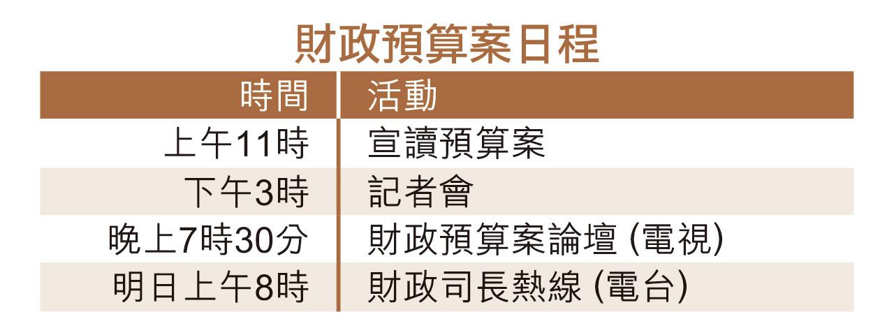 在第五波疫情下,財政司長陳茂波今晨11時將首次以視像形式發表財政預算案,下午3時舉行記者會,傍晚7時半舉行電視論壇。政府呼籲市民網上瀏覽(https://www.budget.gov.hk/2022)有關資料,當局將同步發放,以減少社交接觸,但預留少量預算案演辭文本和單張於部分政府辦公大樓派發。