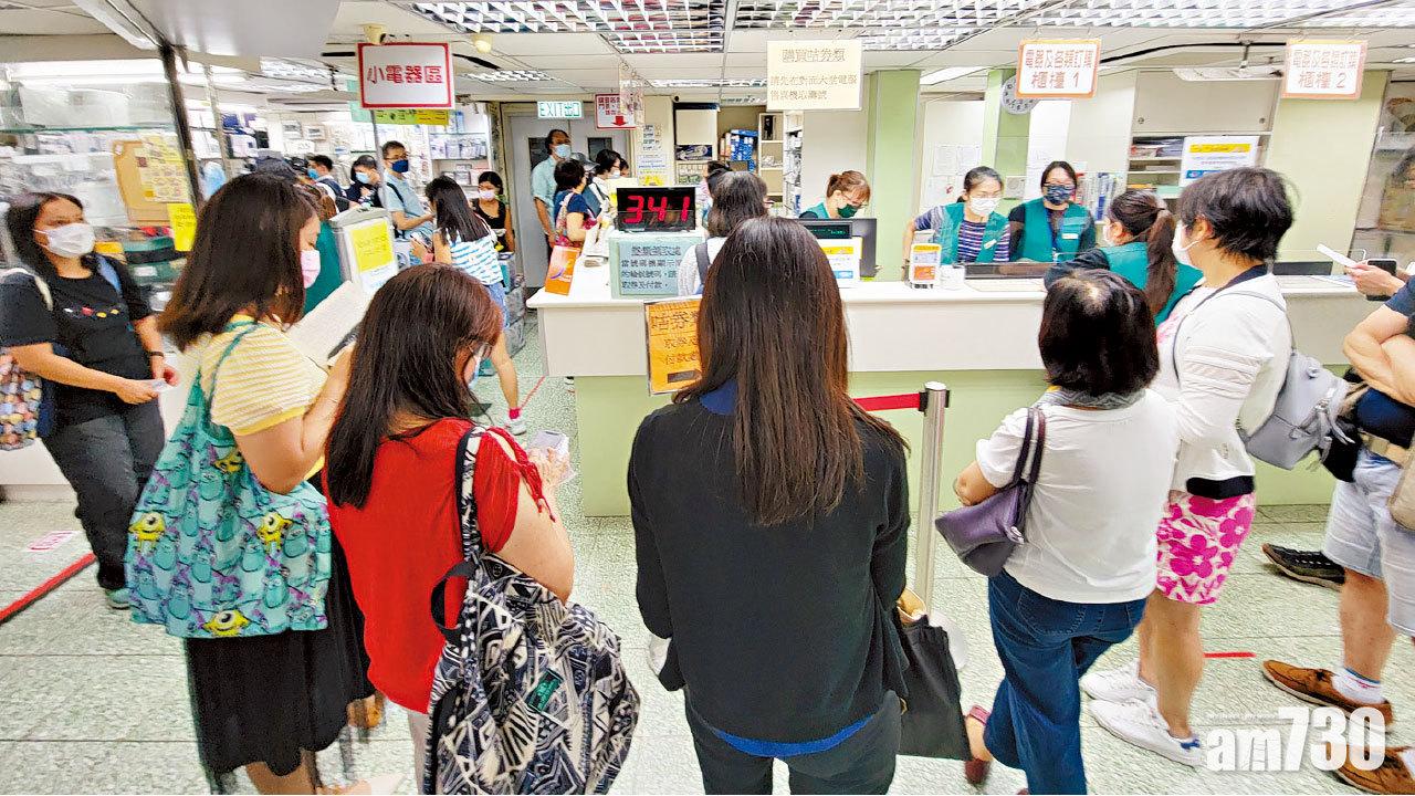 教協兩個超市昨大排長龍,圖為銅鑼灣服務中心。(林俊源攝)