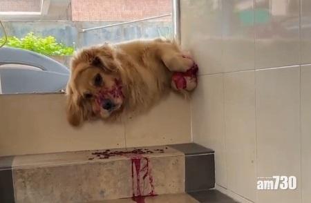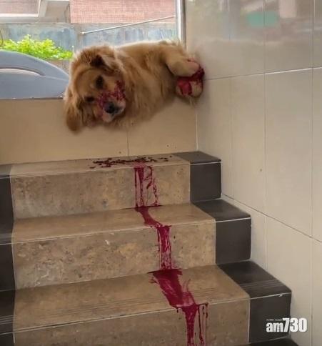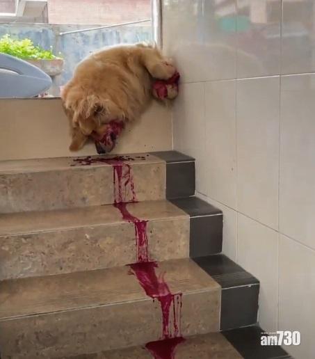 狗狗仍滿咀紅色液體。