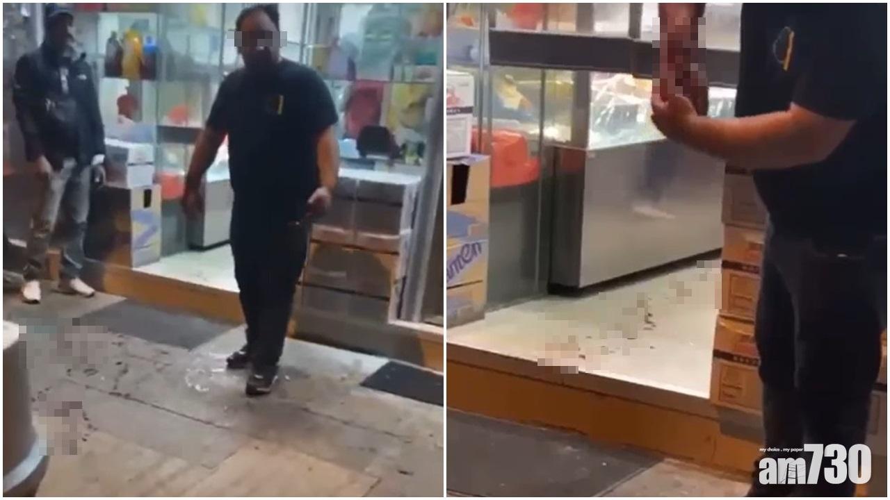 影片中11名黑衣刀手闖入炮台街一間雜貨小食店斬人,一名南亞裔男子手腕捱斬流血。(網片截圖)