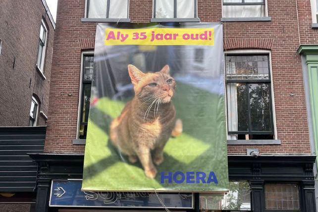 一名住在荷蘭的大陸網友在微博上PO文分享,指自己在經過家附近的社區時,突然看到一張超大的貓咪海報,原來海報主角橘貓艾莉(Aly)歡慶35歲生日,飼主特地為牠「公告周知」,想與大家一起分享這份喜悅。