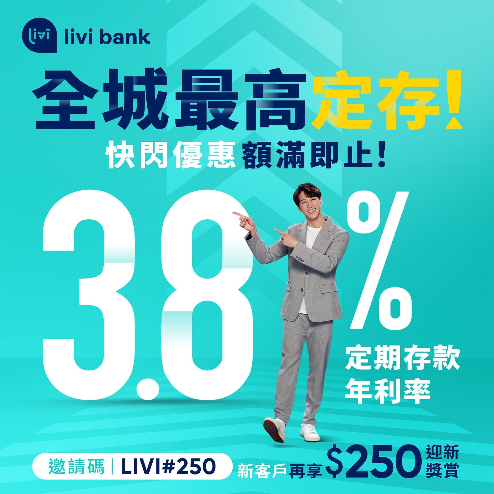 livi bank指,推出高息定期存款優惠,年息最高為3.8厘。