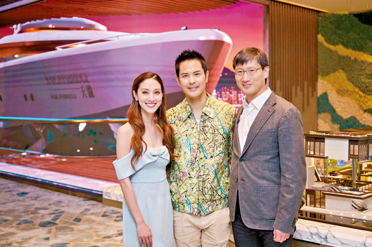 天瀧邀請鄭嘉穎(中)及陳凱琳(左)夫妻檔上陣拍攝宣傳短片;右為韓家輝。