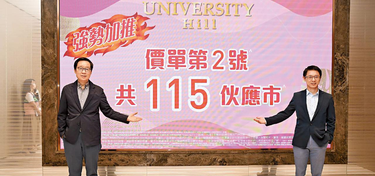 雷霆(左)稱,University Hill新價單與首張價單折實平均呎價16,288元相若;右為胡致遠。(何耀勤攝)