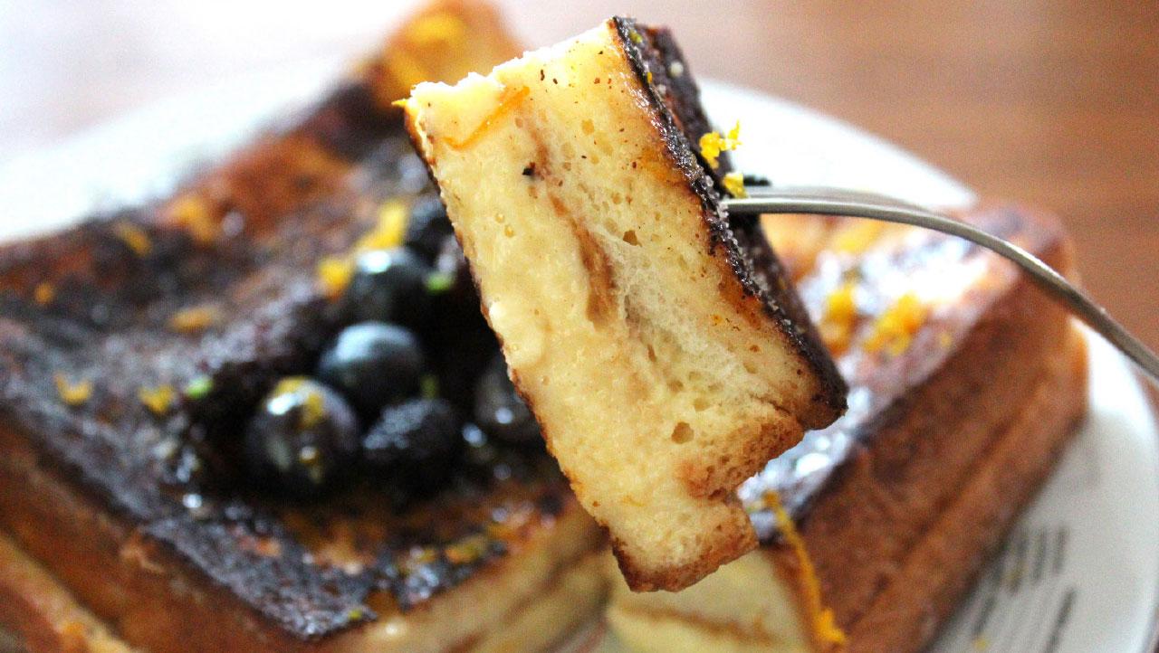 法式牛油軟麵包,入口鬆軟有牛油香,上網跟Grégoire學做花生醬法式西多士,層次變化更多。食譜中的浸用牛奶加入30g砂糖(最後會用肉桂糖飾面及糖漿伴食),記者怕太甜,自行斟酌減量。要吃到內脆外嫩又濕潤的西多士,先要將方包浸牛奶3至4分鐘。