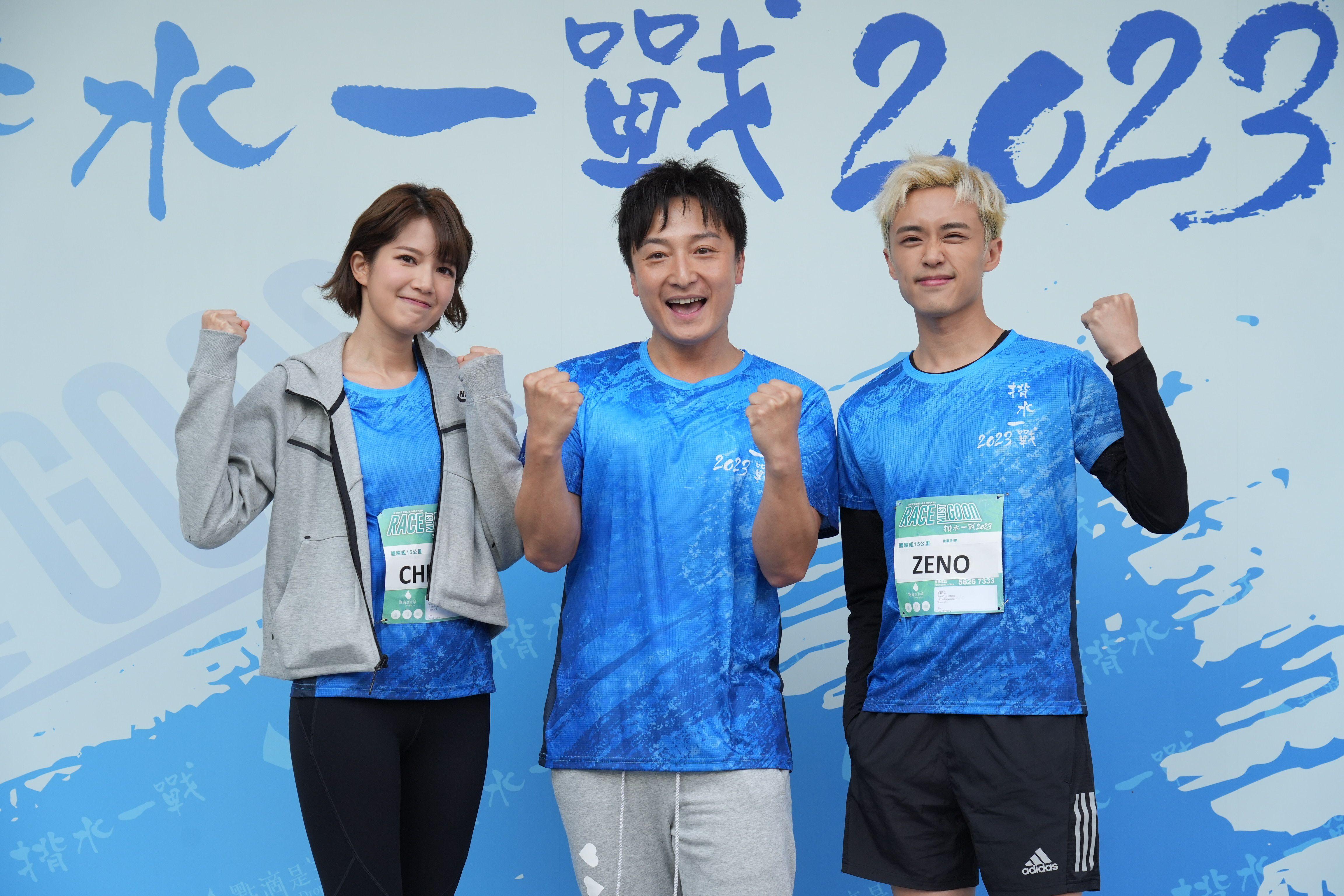 ⽅⼒申、顧定軒、蘇皓兒出席「揹水一戰2023」實體賽開步禮。