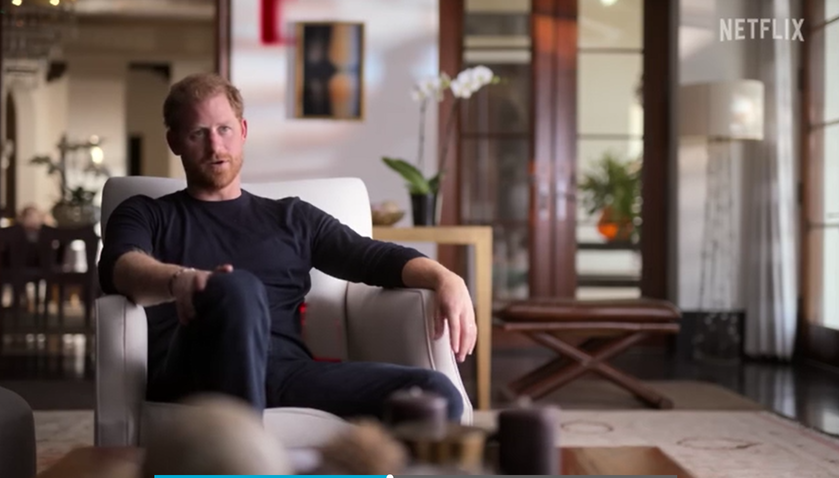 Netflix紀錄片《哈利王子與梅根》(Harry & Meghan)前導預告片開首展示了多張亨利及梅根在不同場合的甜蜜黑白照,以及梅根懷孕時的照片,亨利在當中說︰「沒有人知門後所發生的事」,然後可見梅根用手掩著額頭狀甚困擾,以及她出席英女王伊利沙伯二世國葬時落淚的照片,然後是一大群記者舉機拍攝場面,亨利緊接著說︰「為了保護我家人,我可以做任何事」,之後是報紙印刷出版,以後是亨利及梅根由小到大照片的快縮展示,並可見二人在抹眼淚,梅根在預告片末說︰「當(爆料)風險這麼高,來聽我們說自己的故事不是更有意義嗎?」