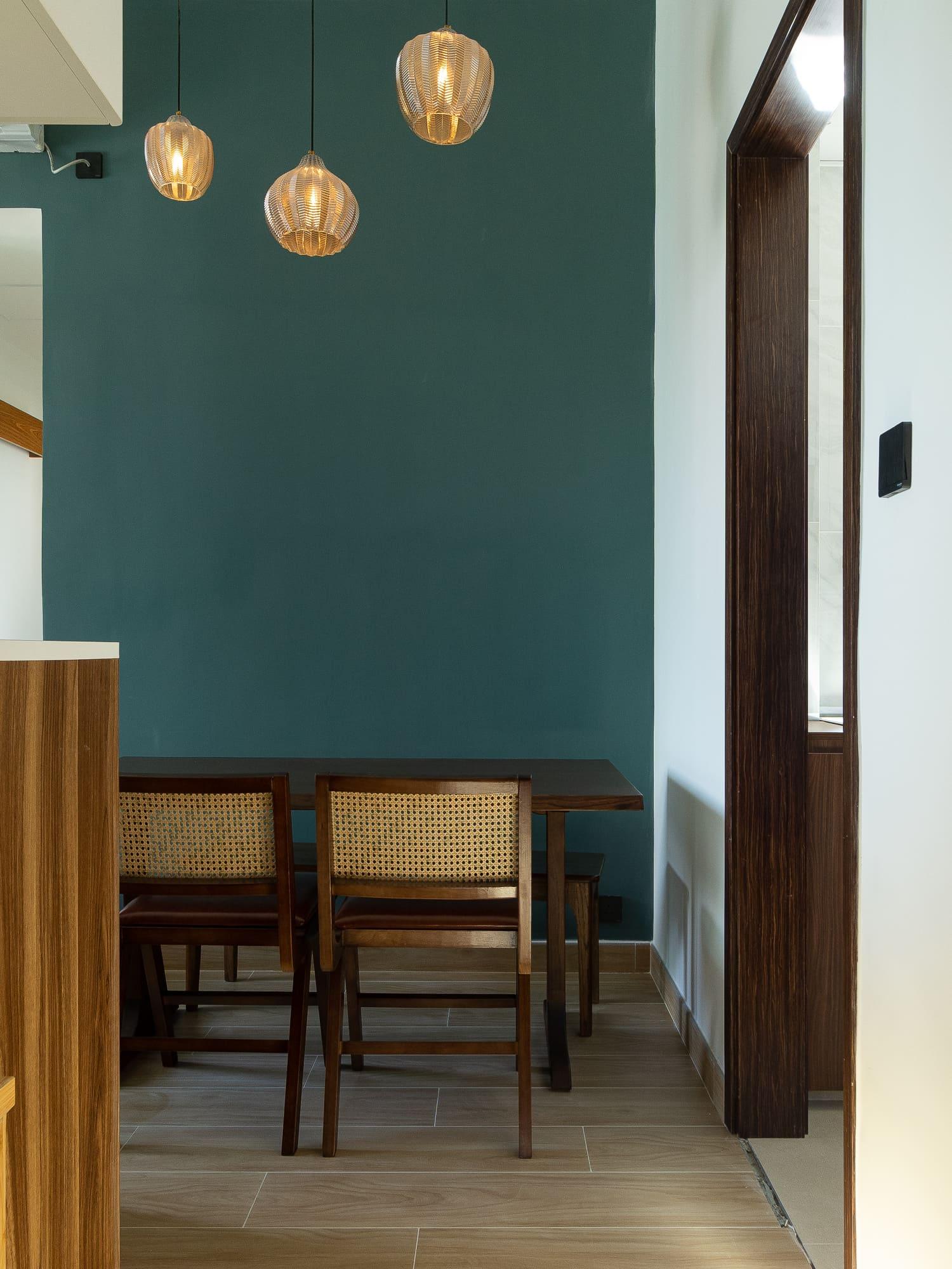 客廳髹上墨綠色油漆 令用色更加活潑兼有大自然感覺