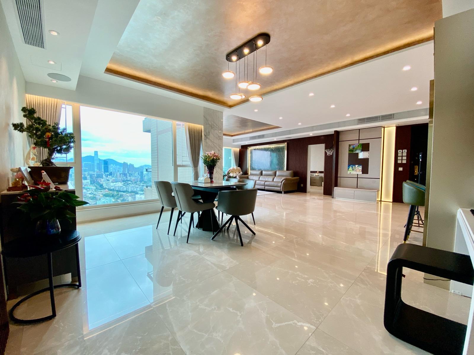 超闊落的L型巨廳,附有落地大窗,窗外市景一覽無遺。