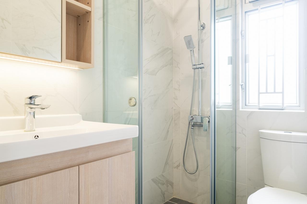 這個單位的樓齡已經有超過60年,戶主落足成本,成功將單位大翻新,設計成極具美感的無印風家居,居室運用大量的淺木色傢俱,低對比配色,無論是地板、牆身以及儲物櫃的飾面,都用上了淺色木材的元素。而這個單位有大窗戶,自然光能夠滲入,令全屋都非常光猛,營造溫暖感。