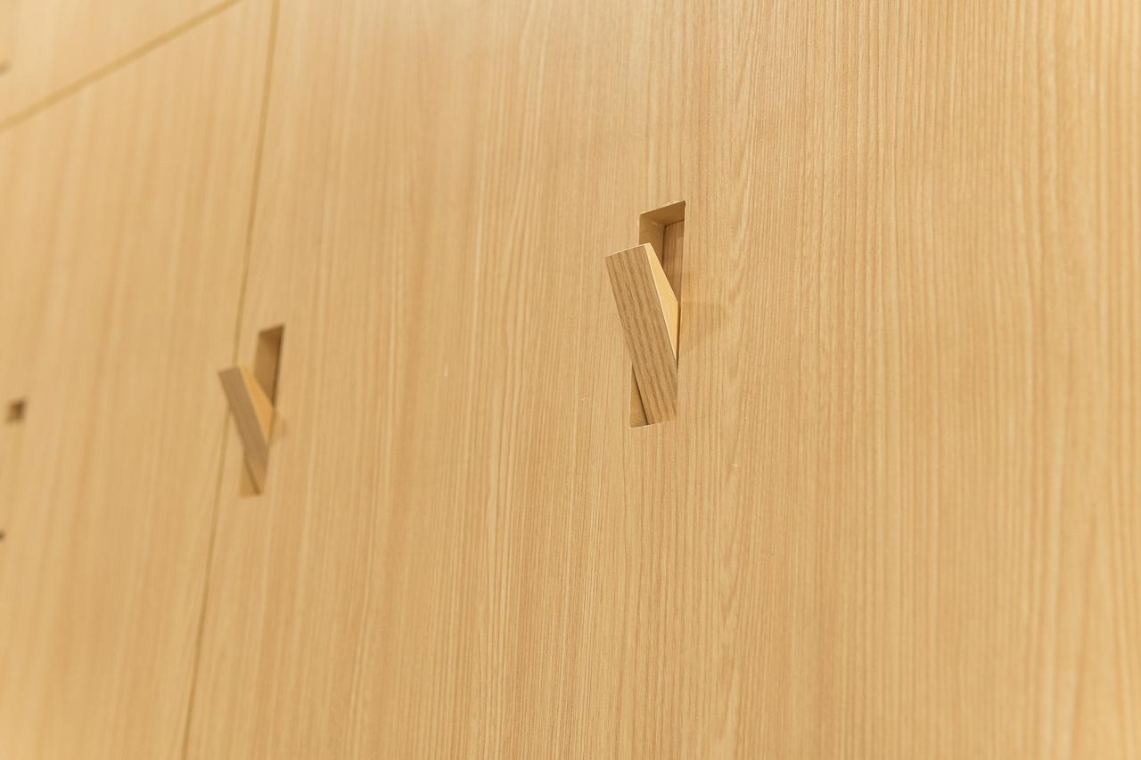 而傢俬亦配合室內設計風格,挑選充滿日式風格梳化以及餐桌椅,令全屋的設計得以統一。睡房的亦沿用淺木色的木色,設計了一個地台床,大量增加收納空間,一側靠窗的位置,造了一張曲尺型的書檯,作為日常辦公以及梳妝的空間。