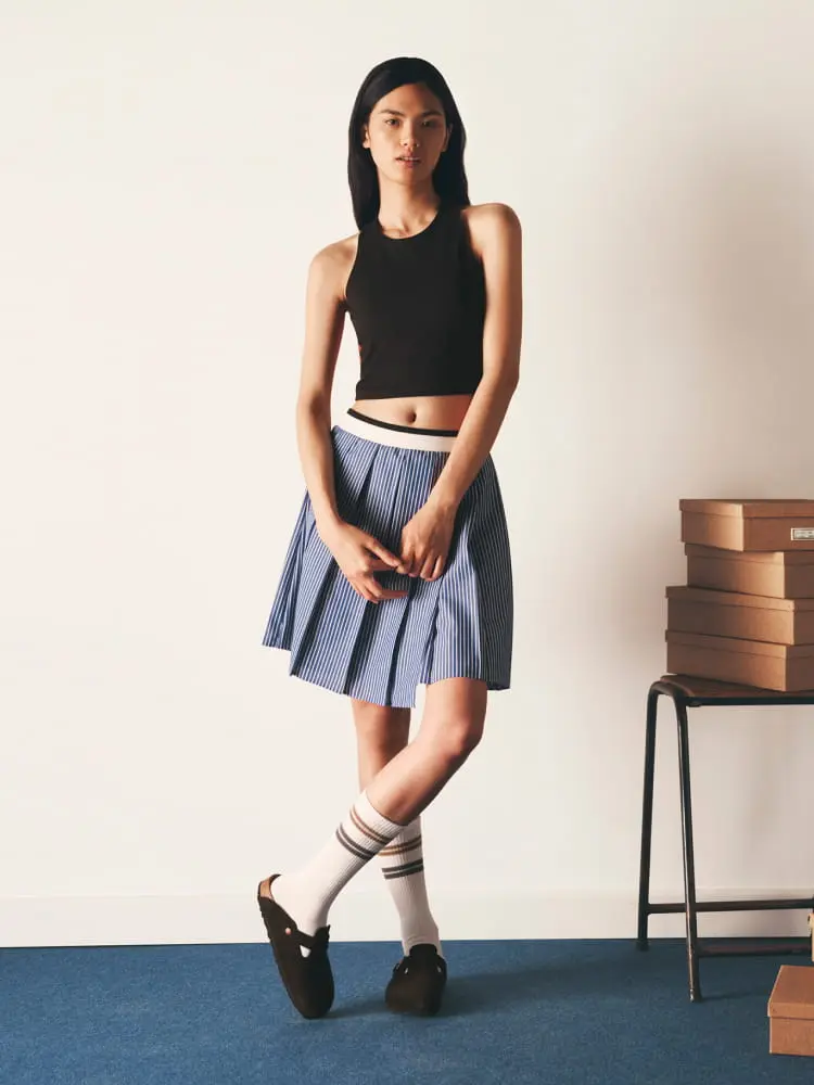 系列更有部分服飾是於日常與運動場合皆可穿著,例如以網球服為設計靈感的打褶迷你裙、以柔軟速乾的AIRism物料製作的緊身褲及短身背心、採用超輕盈尼龍物料的拼色連帽外套,不單物舒適輕便,亦同時注入了JW ANDERSON 富玩味性的拼色設計元素,各位準備在春天重新做運動的人士記得留意了。