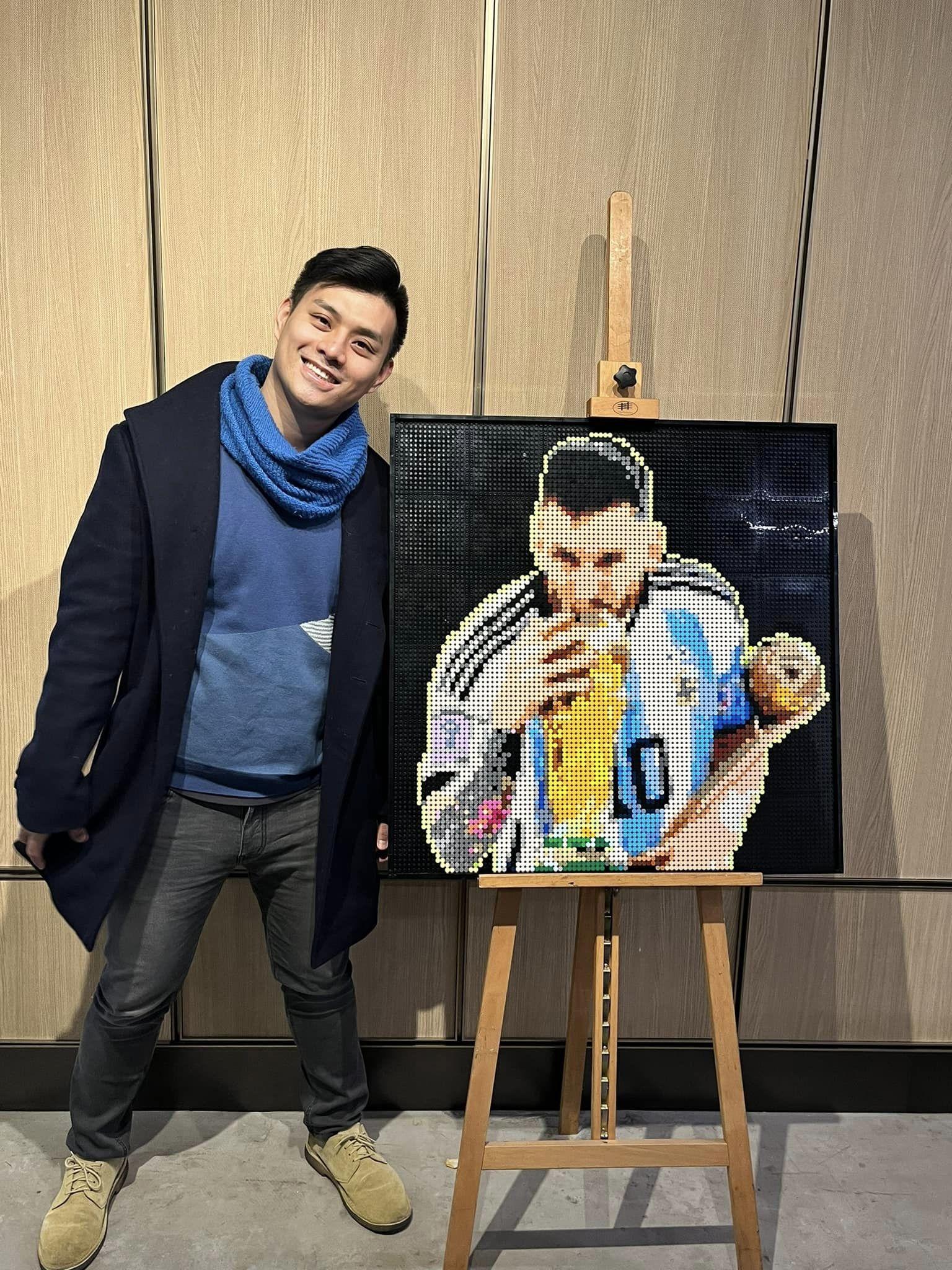 King砌出美斯一吻世界盃畫作,代表美斯對夢想的堅持。(受訪者提供)