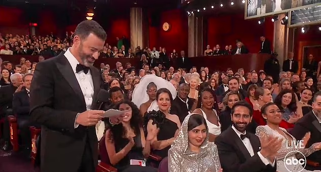 25歲的馬拉拉監製的《Stranger at the Gate》有份角逐本屆奧斯卡最佳紀錄短片獎,55歲的基梅爾在台下訪問她時,一本正經地引述一名女支持者的提問,說「她問,你在人權及婦女教育問題上的工作充滿啟發性」,馬拉拉一臉認真地聽著,但基梅爾接下來的提問是︰「作為史上最年輕的諾貝爾和平獎得主,你認為Harry Styles有沒有向Chris Pine吐口水?」