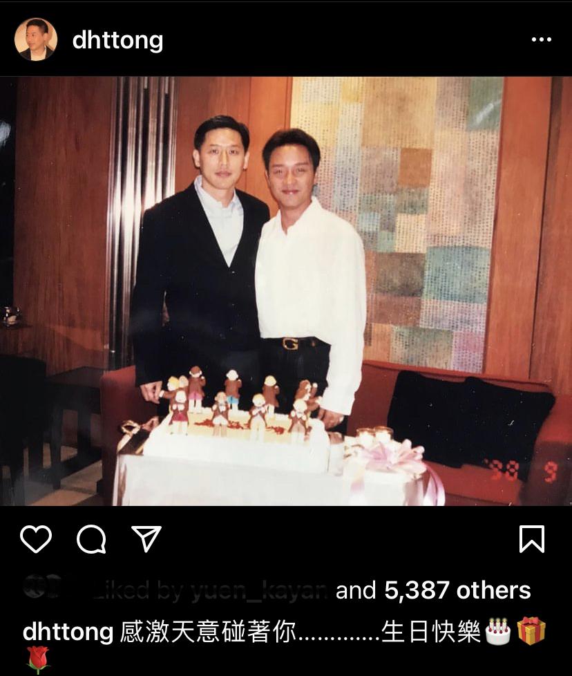 張國榮66歳冥壽,唐鶴德於零時分享兩人慶生的舊照。