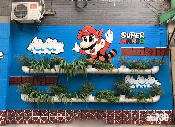 陝西西安新城區出現一處新「打卡位」!當地政府為美化老街「皇城西路」,在兩邊牆壁畫上任天堂旗下經典遊戲Super Mario的場景,還配合主題以水管作為花槽種花,不少民眾大讚「很漂亮」、「有種玩遊戲的感覺」。