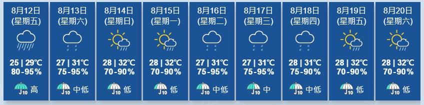 【08:48更新】黃色暴雨警告及雷暴警告現正生效。天文台表示,一道廣闊低壓槽正為南海北部及廣東沿岸帶來驟雨及雷暴。本港今日天氣大致多雲,有驟雨及幾陣狂風雷暴,雨勢有時較大。最高氣溫約29度。吹和緩東南風。今日的最高紫外線指數大約是5,強度屬於中等。展望明日仍有幾陣驟雨。隨後一兩日部分時間有陽光。