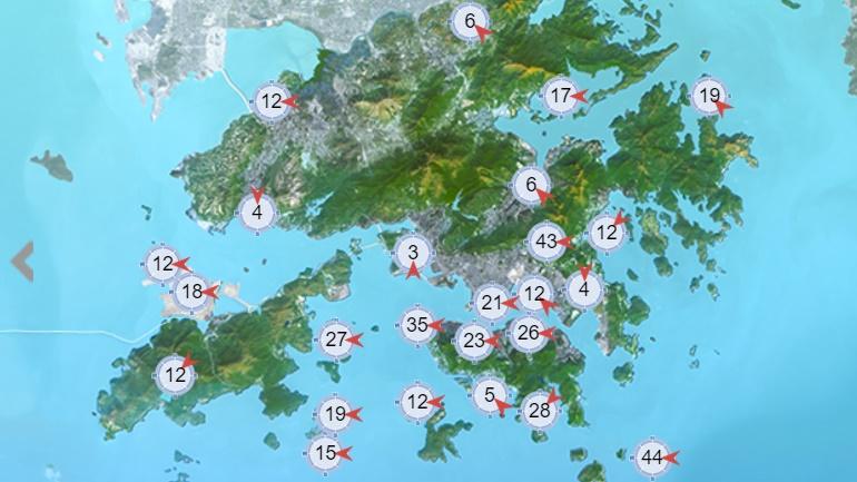 天文台表示,一股達強風程度的偏東氣流正影響廣東沿岸。(香港天文台)