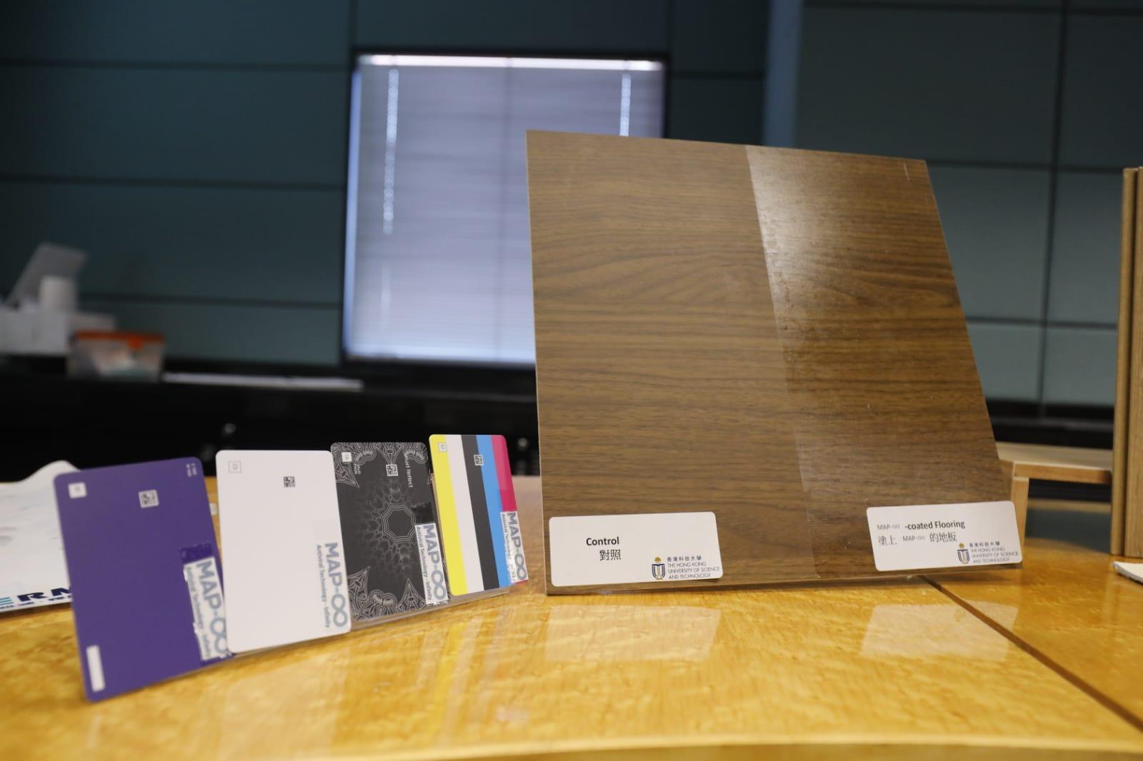 科大研發新一代殺菌塗層「MAP-∞」,可殺滅99.9%新冠病毒,包括Omicron。(林俊源攝)
