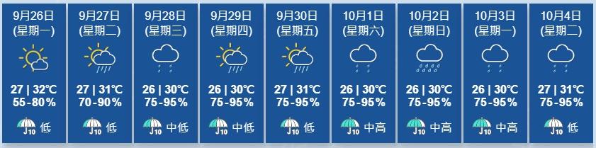 天文台又指,受東北季候風影響,星期二(27日)和星期三(28日)本港吹東至東北風,風勢頗大,亦有幾陣驟雨,呼籲市民請留意最新的天氣消息。