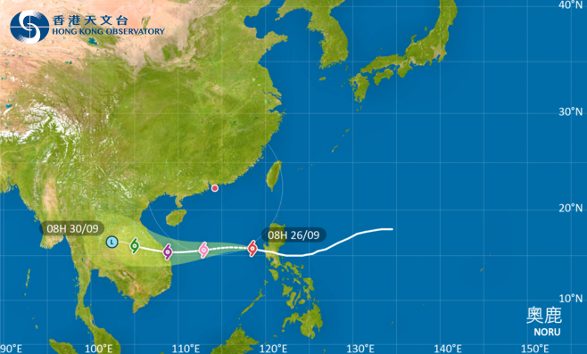 天文台指,熱帶氣旋奧鹿會與香港保持700公里左右的距離,對香港的直接威脅不大。(天文台網頁截圖)