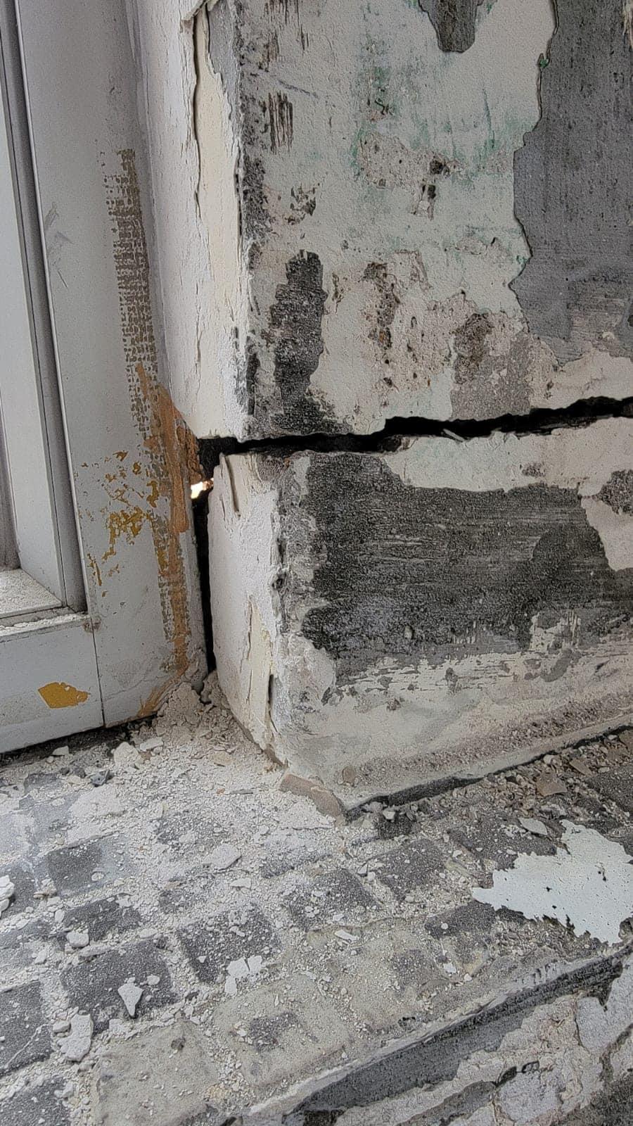 佐敦「八文樓」當中的文苑樓,近日一個低層單位被人發現,內部天花石屎剝落、牆身鋼筋外露,樓宇外牆更出現明顯裂縫,情況令人關注。警員正圍封涉事地點調查,測量師學會前會長何鉅業今日亦到場,他接受訪問時指出,文苑樓牆角有明顯裂痕、裂痕亦相當大,而裂痕的走向似乎顯示承託一樓的結構構件失效,並有向下移、下墮的趨勢。他表示,需要留意樓宇破損位置,是局部還是系統性地出現問題,業主應該即時處理,又相信屋宇署已經介入事件。