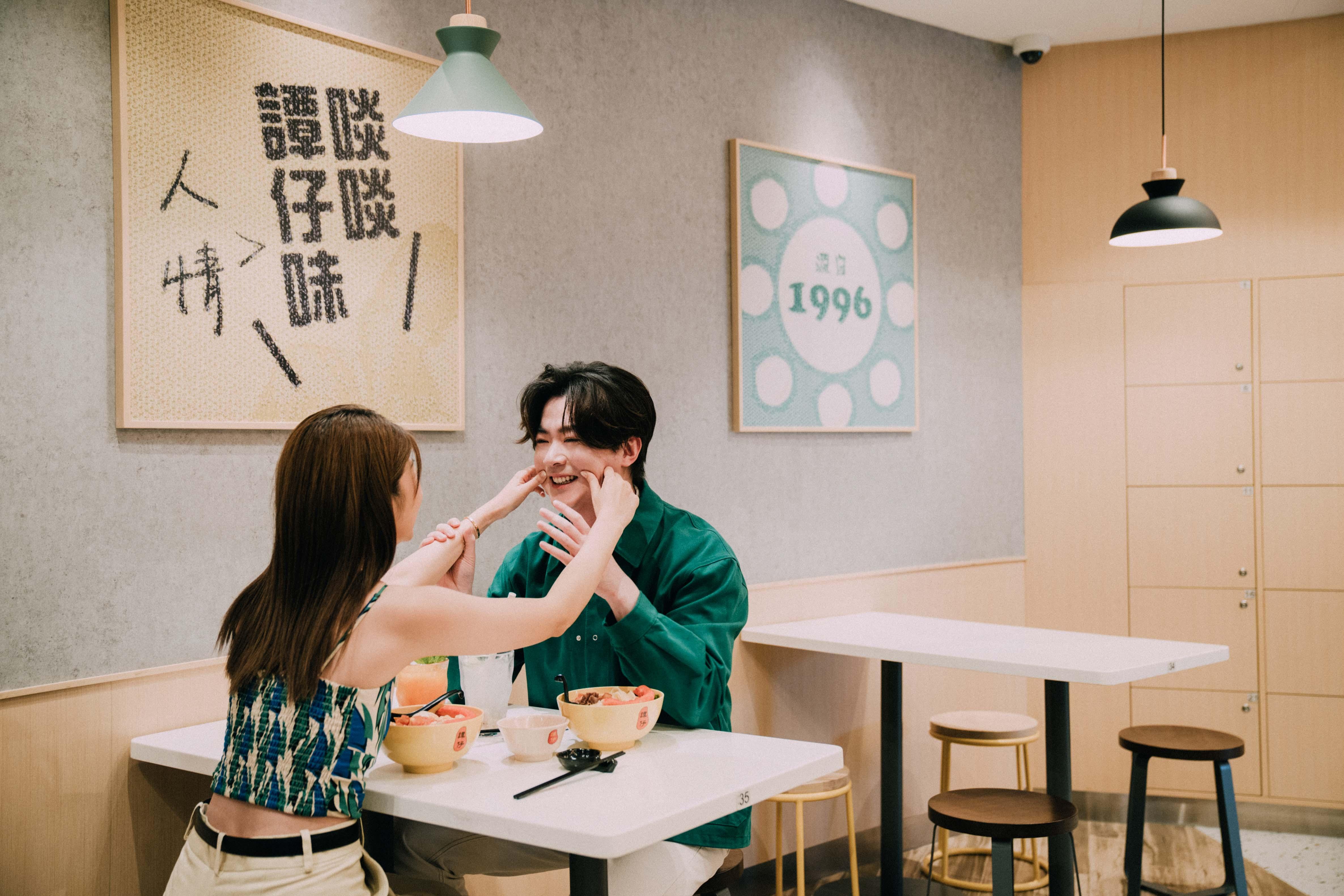 談到首次情侶檔拍廣告,洪卓立說:「今次是第二次一起合作,幾年前邀請她紓尊降貴拍攝MV,當時好開心好榮幸,今次反而有點尷尬,尤其剛才拍第一個shot時,都有點『咦,做咩好呢』的感覺。」Hillary卻表示自己非常享受,毫不尷尬,「剛才拍攝的相片,其實與我們平日在家中自拍差不多,不過平時屋企無其他人,今次就有好多人望著我們,所以他有少許尷尬,但我自己都OK!」兩人默契十足,連飲食口味都非夾,不約而同喜歡番茄湯底配寬麵,Hillary鬼馬表示,「老實說,私底下我都喜歡他闊面,因為有肉地,『好搣啲嘛!』」