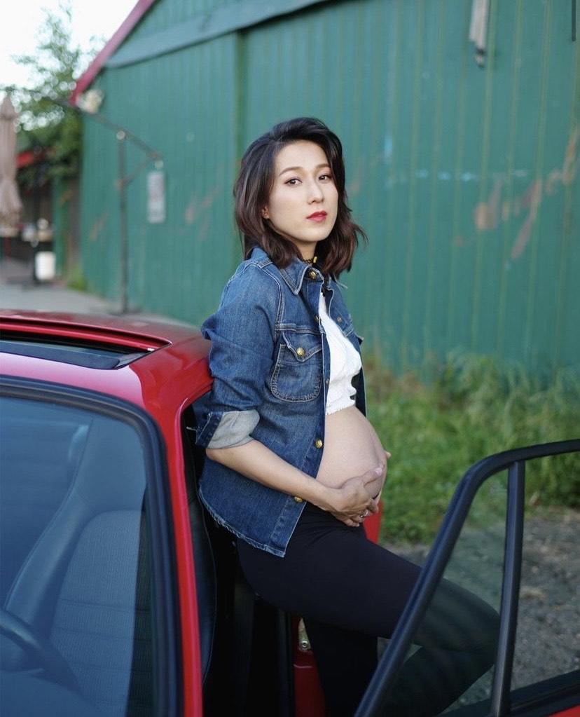 鍾嘉欣(Linda)於今年4月38歲生日當天再度報喜,宣布懷有第三胎,並將在今年誕「虎B」,上月她更正式公開性別是B女。適逢中秋節,Linda今日在社交網派福利曬孕照,相中見快將卸貨的她著上長袖牛仔褸配貼身黑色褲,更掀起上衣露出巨大肚皮,手腳依然纖瘦,全冇水腫,認真是得天獨厚。Linda 倚著一架紅色車,挺着巨肚擺出多個甫士,相當型格,並寫道:「Happy Mid-autumn festival!From Baby and Me 」,不少網民都留言大讚Linda陀得靚,更獲封為「最美的大肚婆」。