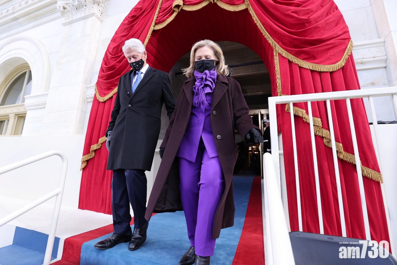 美國副總統賀錦麗與前國務卿希拉莉出席就職禮的「戰衣」均以紫色為主調,分析指選色蘊藏巧思,代表民主、共和兩黨融和,其中賀錦麗一襲紫色套裝配襯珍珠飾品,更是向首位晉身國會的非裔女性奇澤姆(Shirley Chisholm)致敬。