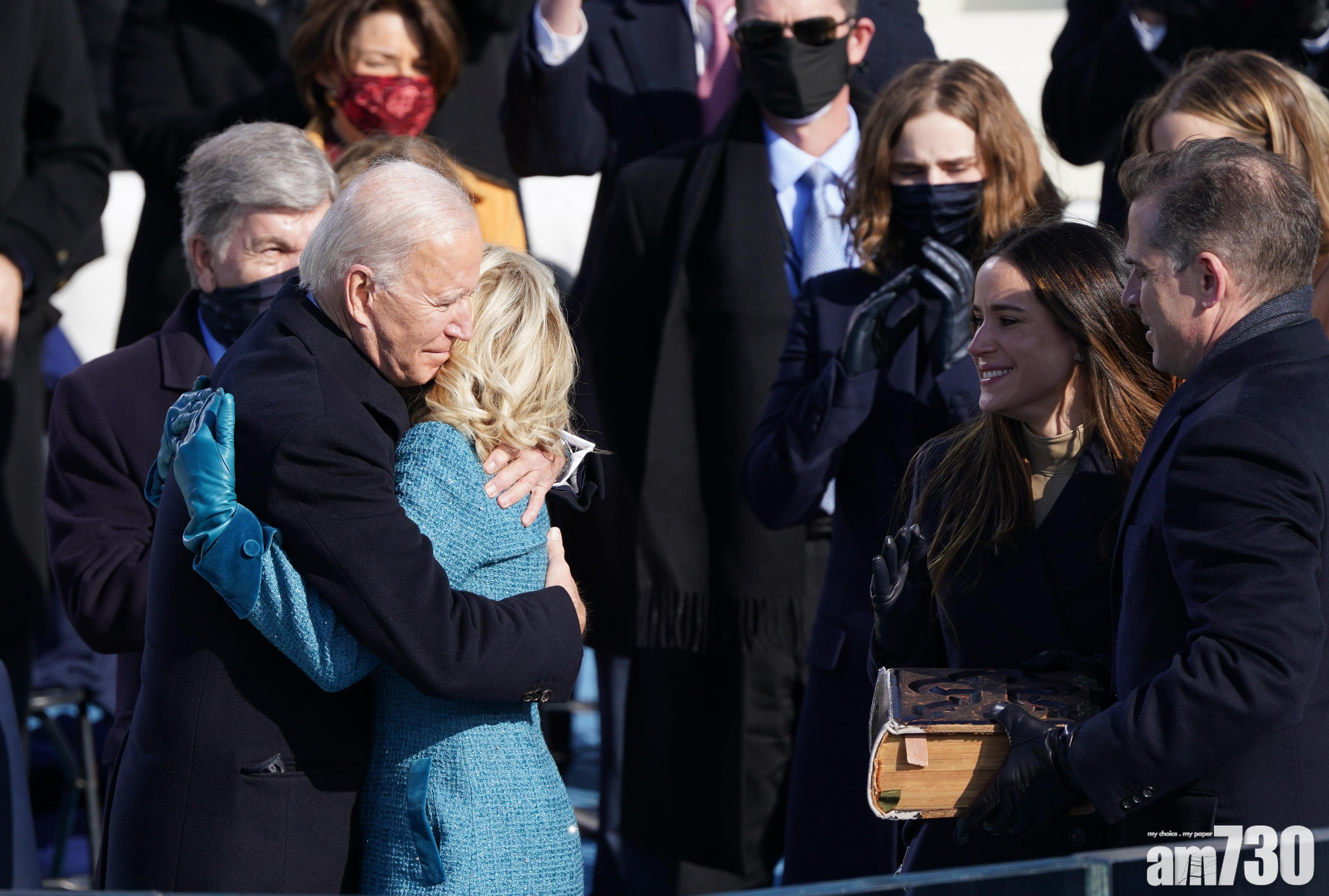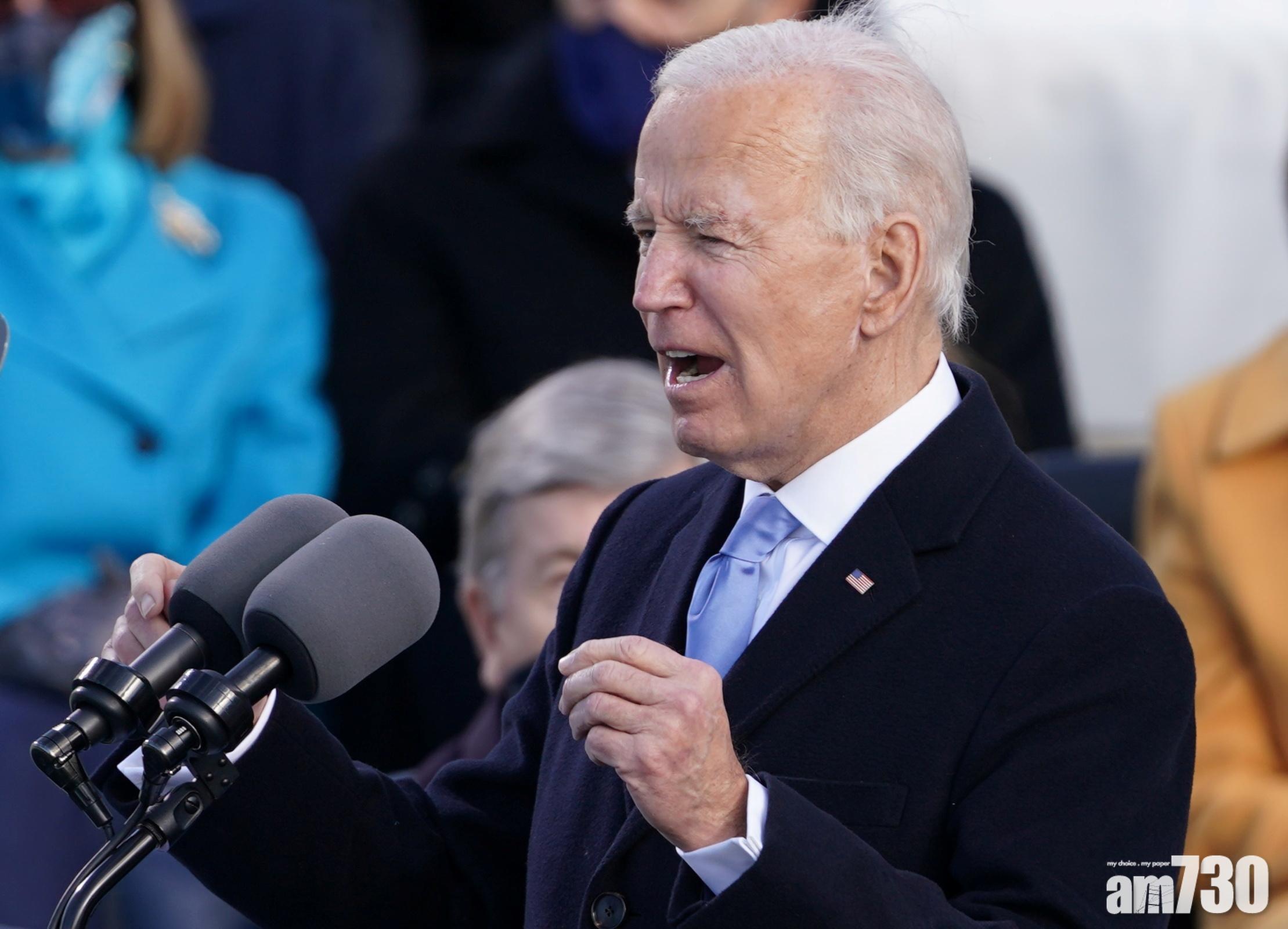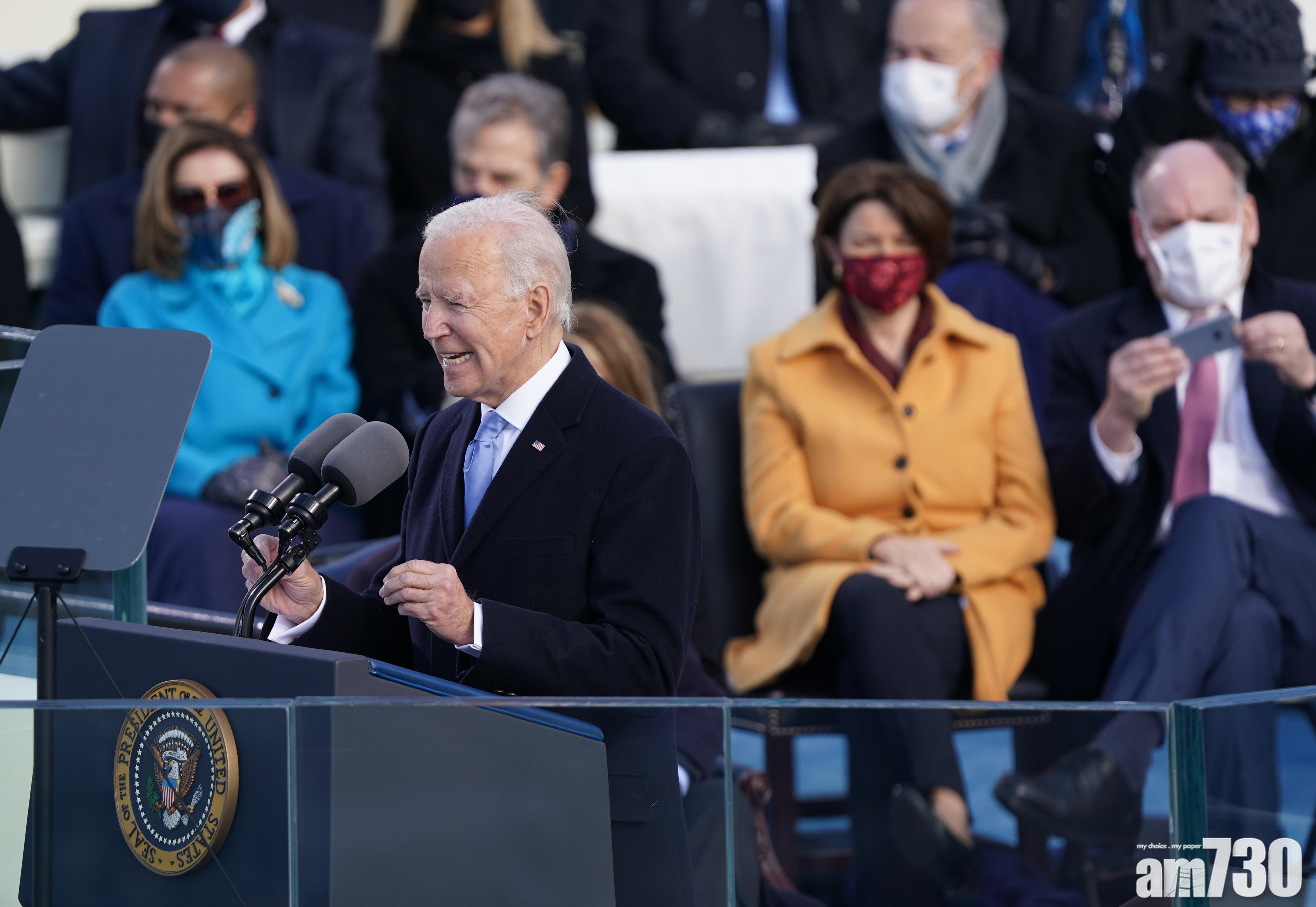拜登的就職禮於美國時間周三中午(本港時間周四凌晨),在華盛頓國會山莊西翼舉行,主題是「美國團結」,他在最高法院首席大法官羅伯茨(John Roberts)見證下宣誓,成為美國第46任總統,接著發表就職演說。拜登稱「這是美國的大日子、民主的大日子」(This is America’s day. This is democracy’s day),指兩周前發生的衝擊國會事件,凸顯了美國民主制度的重要性,「我們再一次領略到民主的寶貴……在這時刻,各位友好,民主得勝了。」他揚言會團結國民,「我知道今時今日講團結,聽來像個愚蠢的幻想」,但亦知道想分化國家的力量很大,也並非新事,深信只有團結才能成功,「前路是團結」(Unity is the path forward)」,「我會成為所有美國人的總統」。