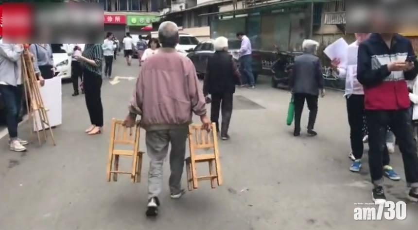 張伯伯擔凳仔去婚姻登記處排隊。(互聯網)