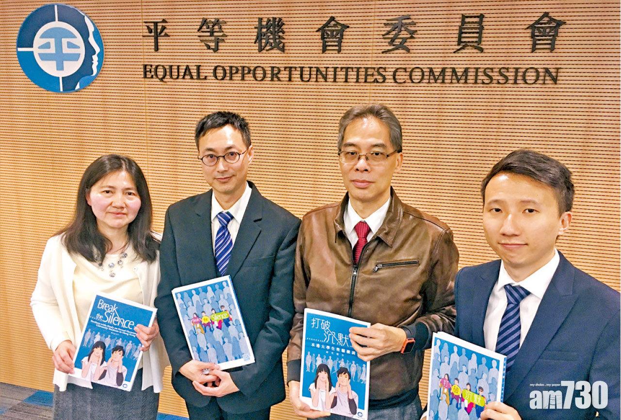 平機會發布首個針對大學生校園性騷擾調查,發現平均每4個大學生,就有1人於過去1年曾被性騷擾,男女比例分別為18.4%及27%。該會署理營運總裁朱崇文(圖右二)稱,一般人都感覺男性受性騷擾比例很低,他對結果顯示男學生比率高近兩成感驚訝,並透露有個案稱擔心影響學業,不敢投訴。