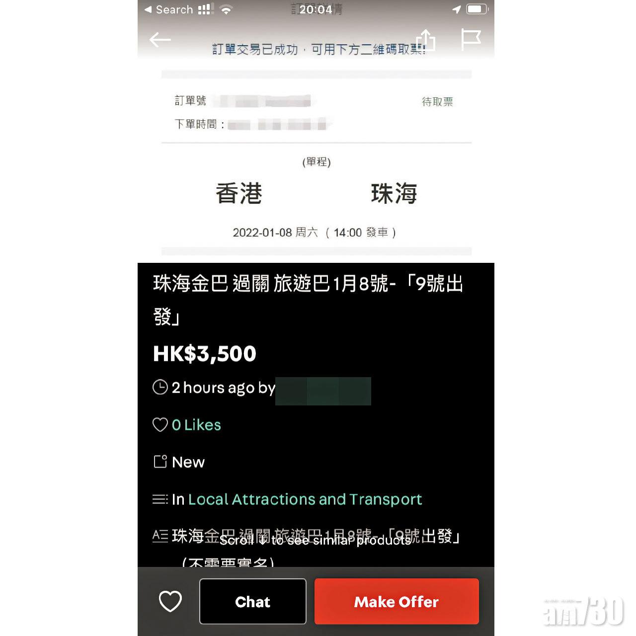 在一個網上交易平台,有自稱在旅行社工作的人,指可代訂購車票,但開價2,000元,也有不少徵求車票的帖文,出價1,000至3,000元。金巴宣布,昨日起,於金巴微信公眾號及網頁購買香港往珠海班次車票,必須提供乘車人士資料姓名及有效身份證明文件號碼,工作人員會要求登車旅客出示身份證明文件證本核對,安排直至另行通知。
