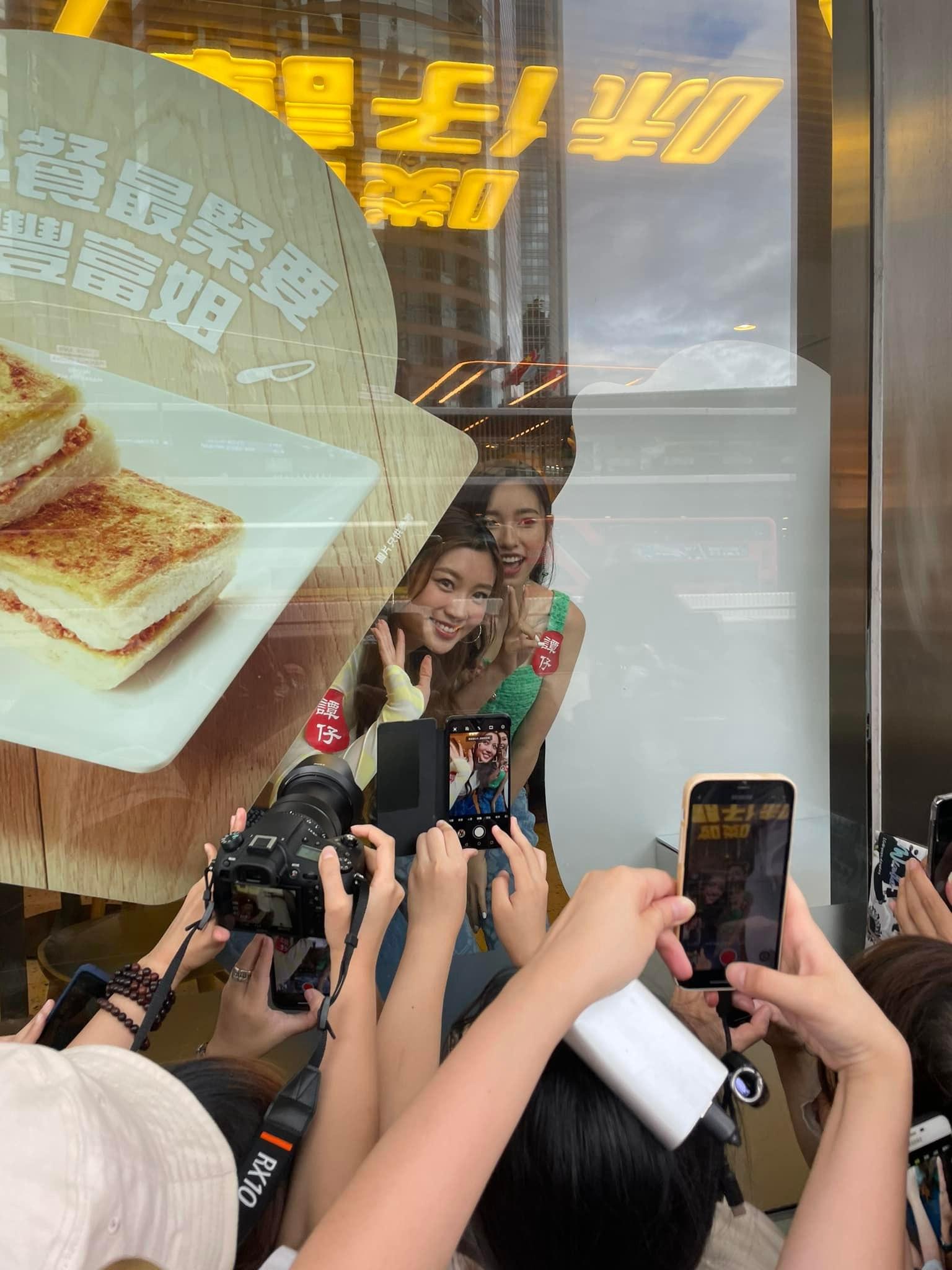 店舖門外擠滿男粉絲,他們舉機不停拍「CANVY」二人,甚至有人出動凳仔以換來較好的拍攝位置。Candy及Ivy So亦十分識做,走到玻璃窗前跟他們揮手,又在店內擺出心心手勢,吸引大家拍過不停。