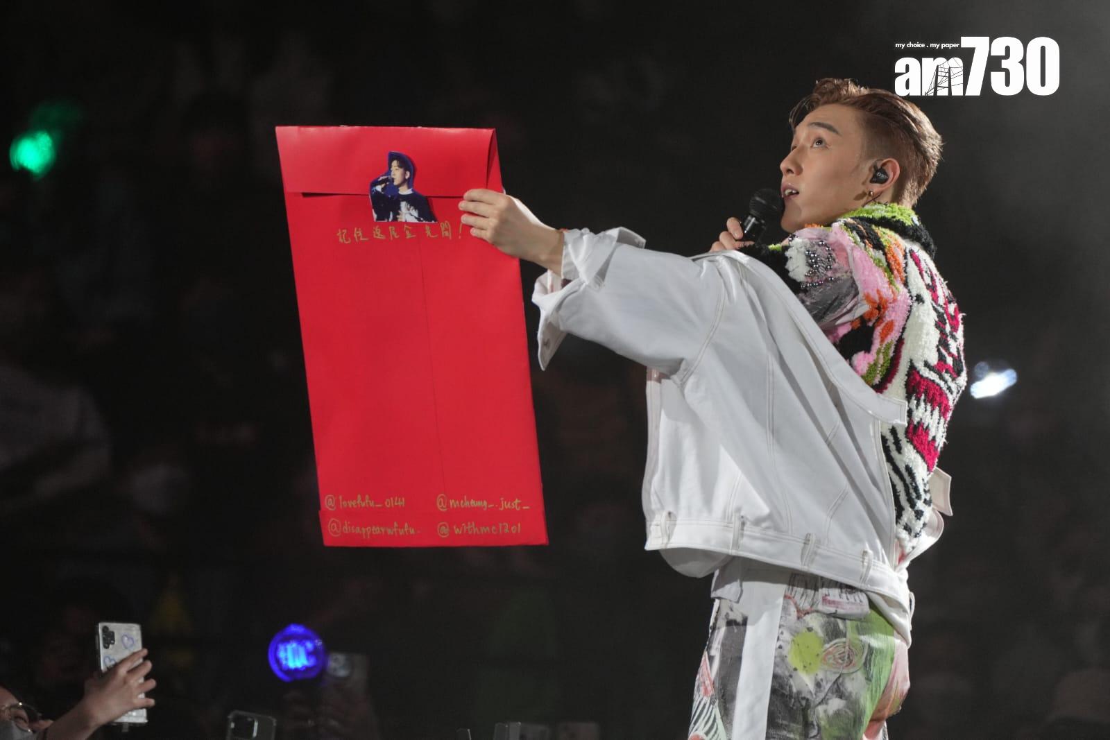 他又提到今次個唱上半場是要很型的出場,因此不停催眠自己就算幾慌也好,都要「chok」出來,去到中段之後,自己開始定下來,開始望望四周情況,台下的觀眾,當時自己也大為感動。提到他走去跟觀眾握手,他表示自己曾一度質疑,但見導演沒有開咪阻止他。問到是否本身設計握手環節在今次個唱內,他表示就算沒有這個環節,也會打算靜靜雞跟觀眾握手。「其實好開心,細個睇演唱會見人哋去握手,依家自己變成台上面嗰個,係截然不同感覺。」
