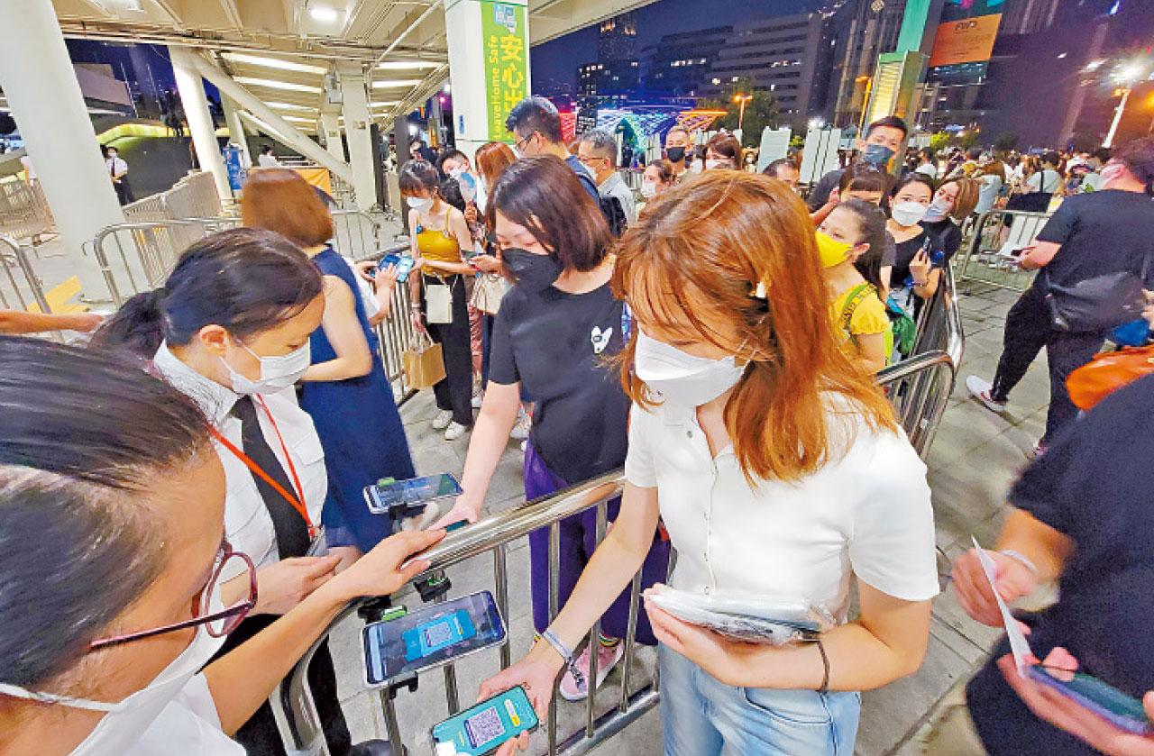 觀眾進場時須掃安心出行,令排隊時間大增。(鍾式明攝)