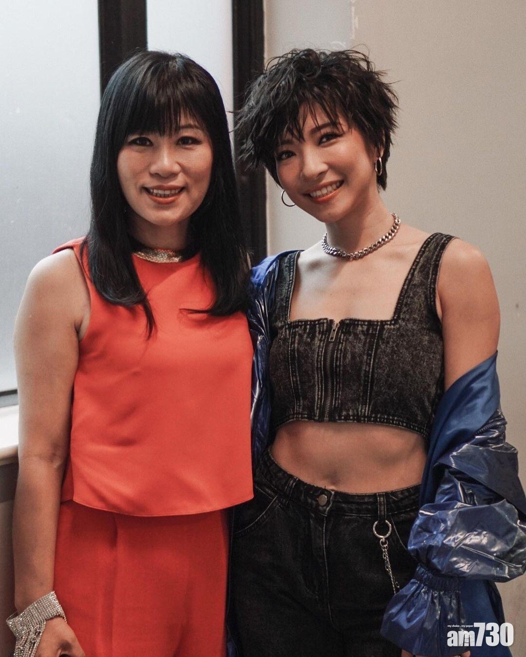 七仙羽在台下拉著陳葦璇,並跟身邊的人不停讚對方是老手。
