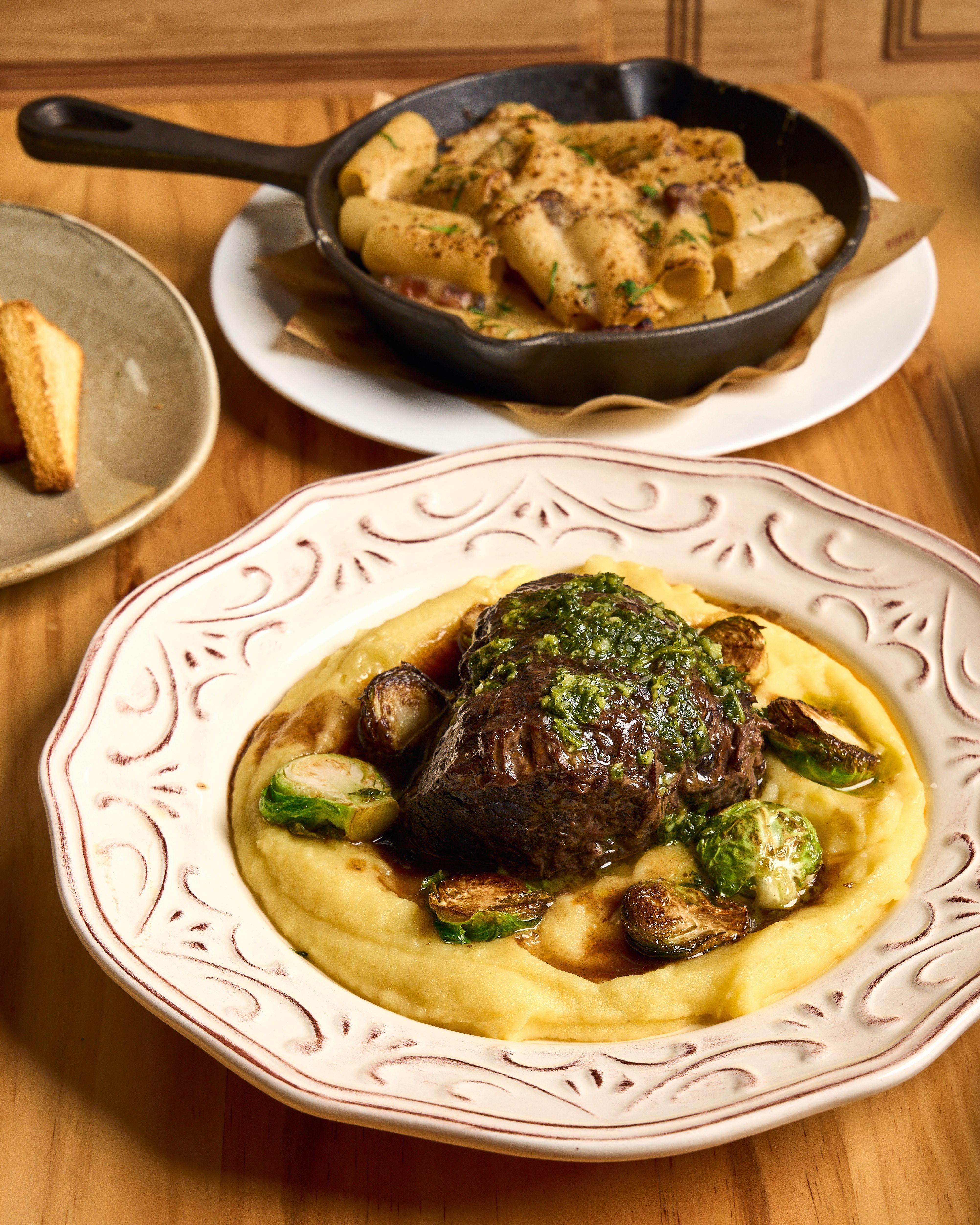 TABIÀ菜單以意大利北部料理為主,冬季限定餐點充滿特色。冬日必食雞湯麵團($158),以意大利傳統麵包餃子作為主角,內含意大利煙肉、洋蔥和芝士,再以用雞腳及雞骨慢燉10小時的清雞湯浸煮,麵包餃子吸盡湯汁精華!還有使用意大利原生牛隻法索納牛肉炮製的生牛肉他他 ($188),搭配自家秘製他他醬和烤布里歐麵包,口感層次豐富。而阿爾卑斯芝士通心粉 ($228)則是今次的重點主菜,將通心粉加入意大利煙肉 、格魯耶爾芝士和焦糖洋蔥焗製,入口微甜香口,香濃暖胃。
