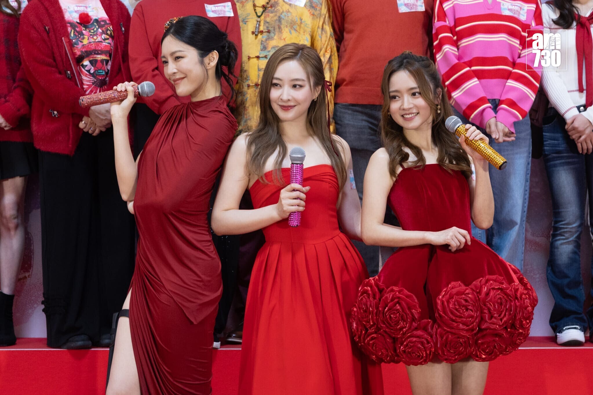 《臥底嬌娃》眾主角身穿晚裝華麗現身谷劇,當中以張曦雯最有睇頭,今日她穿上超高衩裙大曬長腿,相當性感。會上三位女主角除了大擺甫士派福利之外,現場更搶先播放劇集精彩片段,並分享拍攝感受,陳瀅及羅毓儀又即場重演劇中「黃金32C」短片風波一幕,尾聲一同主持啟播儀式。至於早前鬧出A0風波一度停工的Yumi,今日初六終於解凍開工,獲大批fans帶同橫額及舉牌支持。活動結束前,大會安排眾星落台派閃卡,Yumi走近一班支持者,與不離不棄的粉絲大合照。