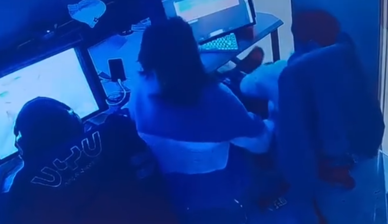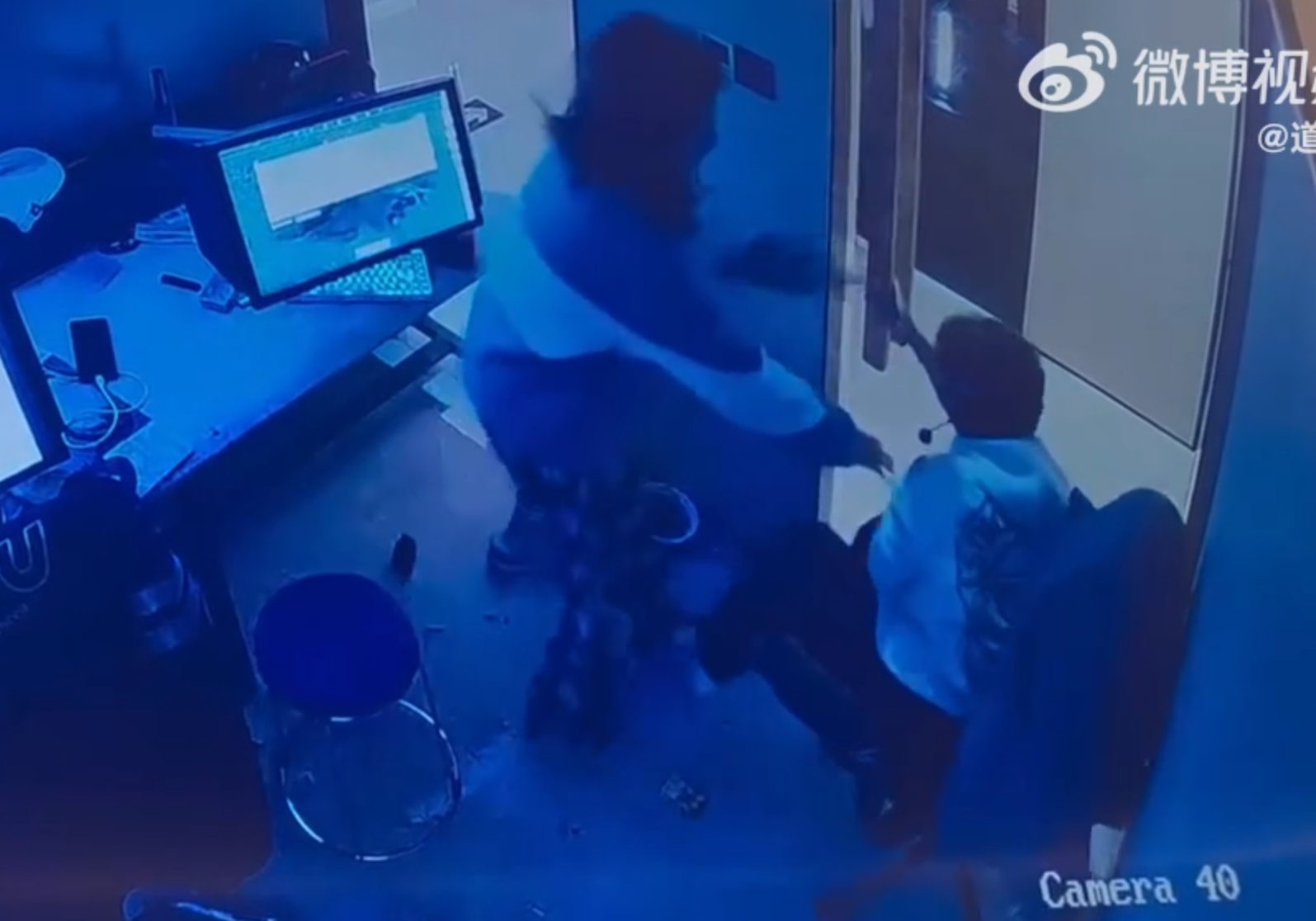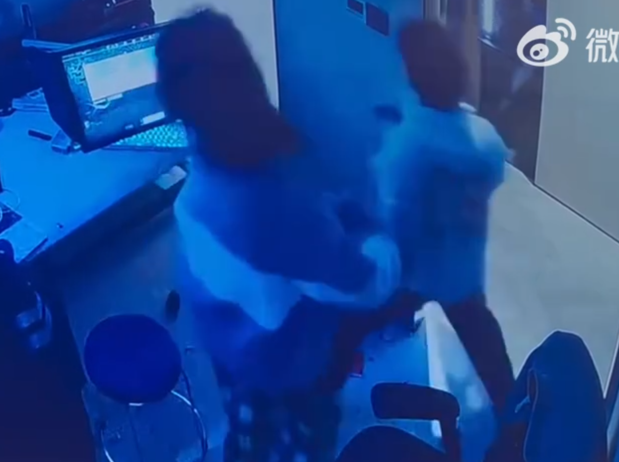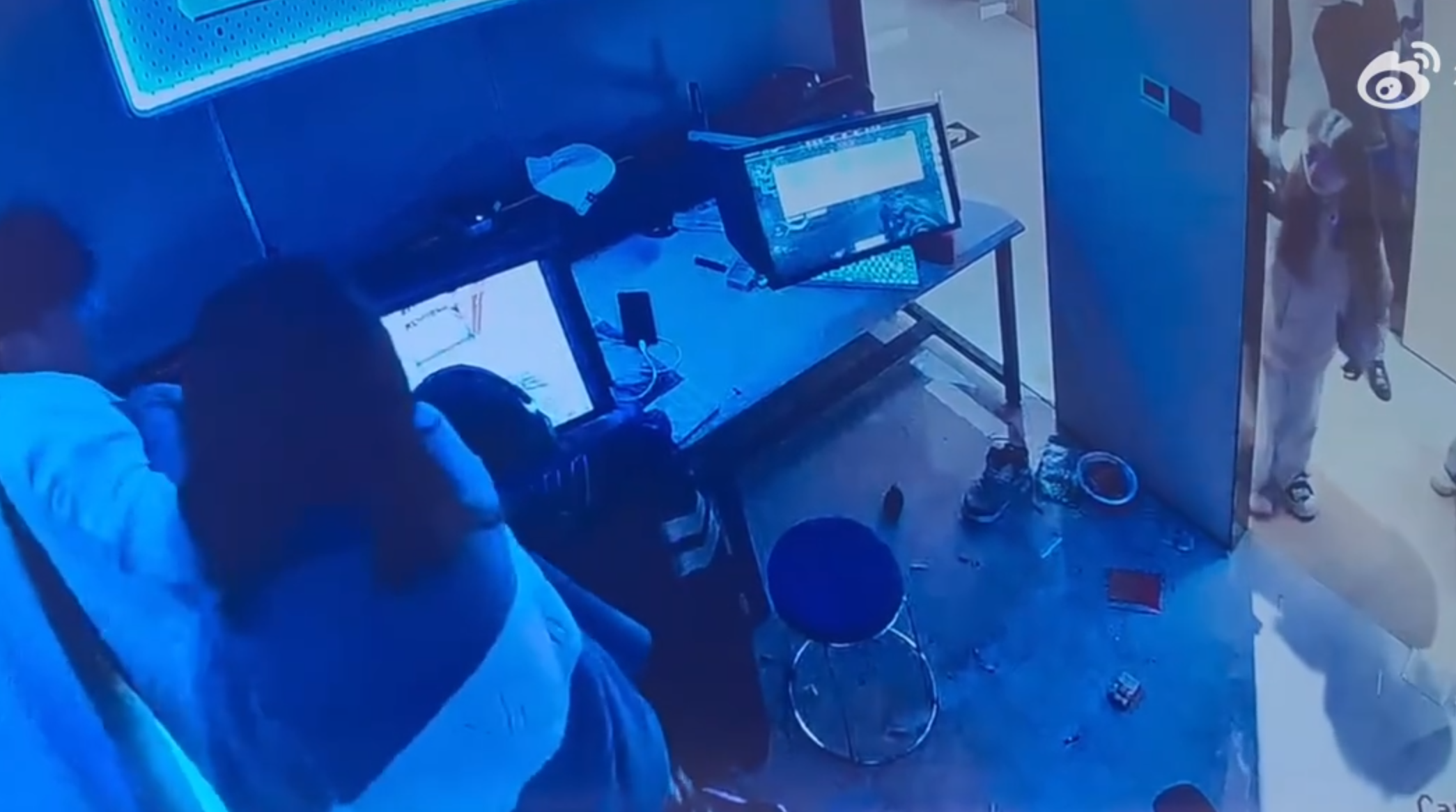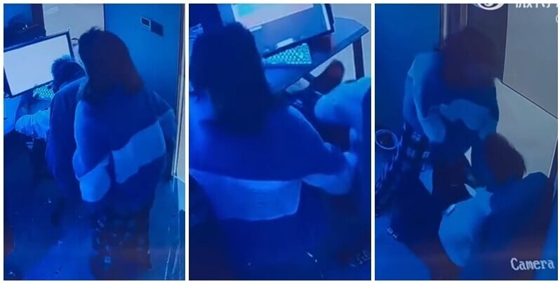 湖南一名男子與朋友前網吧打機期間,被一名陌生女子闖入騷擾猥褻。(微博影片)