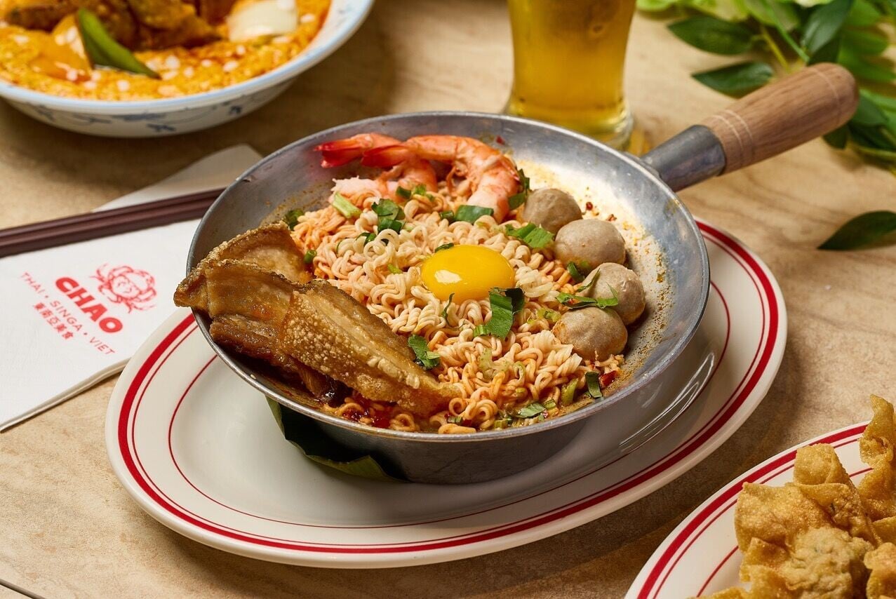 餐廳店名「Chao」靈感源自泰文的「早晨」,氣氛輕鬆親切又舒心。泰裔店主Baljoet最先於尖東開設曼谷街頭美食餐廳Ruên,現在再開這間餐廳,延伸範圍至東南亞菜,找來曾任職本地多間人氣泰國餐廳的泰籍主廚Aom掌廚,由醬料以至甜品每樣出品盡量由零開始自家製作。經典泰式前菜小食有鳳爪沙律配炸雞皮,不單酸辣醒胃,更加入炸雞皮提升香脆咬口感。炸豬肉雲吞, 以香料混入免治豬肉餡,蘸自家調製甜辣醬,脆口惹味。炭燒豬頸肉配自製羅望子醬,酸甜鹹香滋味。原隻燒魷魚彈牙帶炭香。