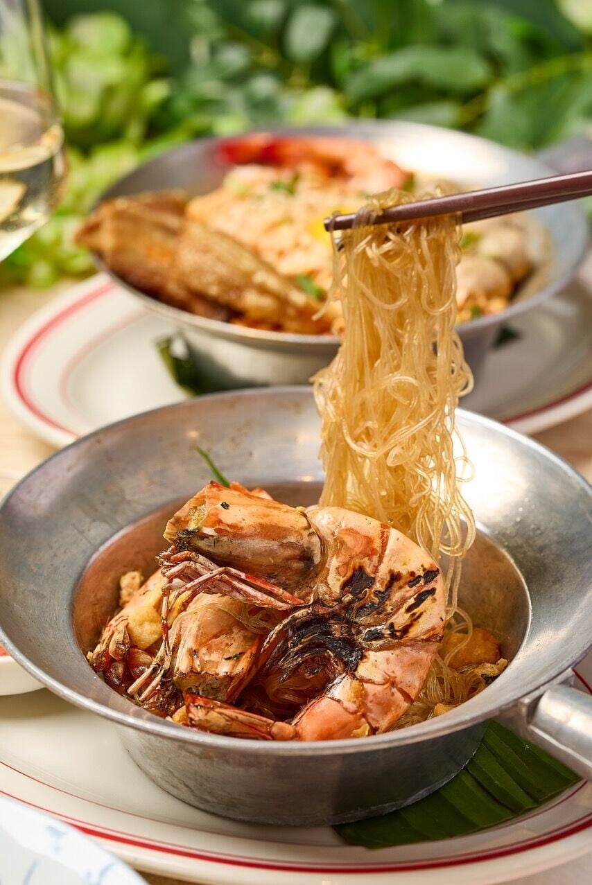 咖喱控必試主廚家族秘方的椰香黃咖喱,質感濃稠,辣度輕盈,香料幽香,配搭軟殼蟹或牛腩都想送飯。以泰國不鏽鋼鍋烹調的熱辣辣麵食有利保存溫度與香氣,泰國人慰藉的Mama Jeh O媽媽冬蔭公仔麵湯加上大大份鮮蝦、香脆五花腩、自家製豬肉丸與雞蛋,更令人滿足。焗粉絲蝦煲、泰式焗海鮮飯及其他鑊氣小炒都適合三五知己共享。