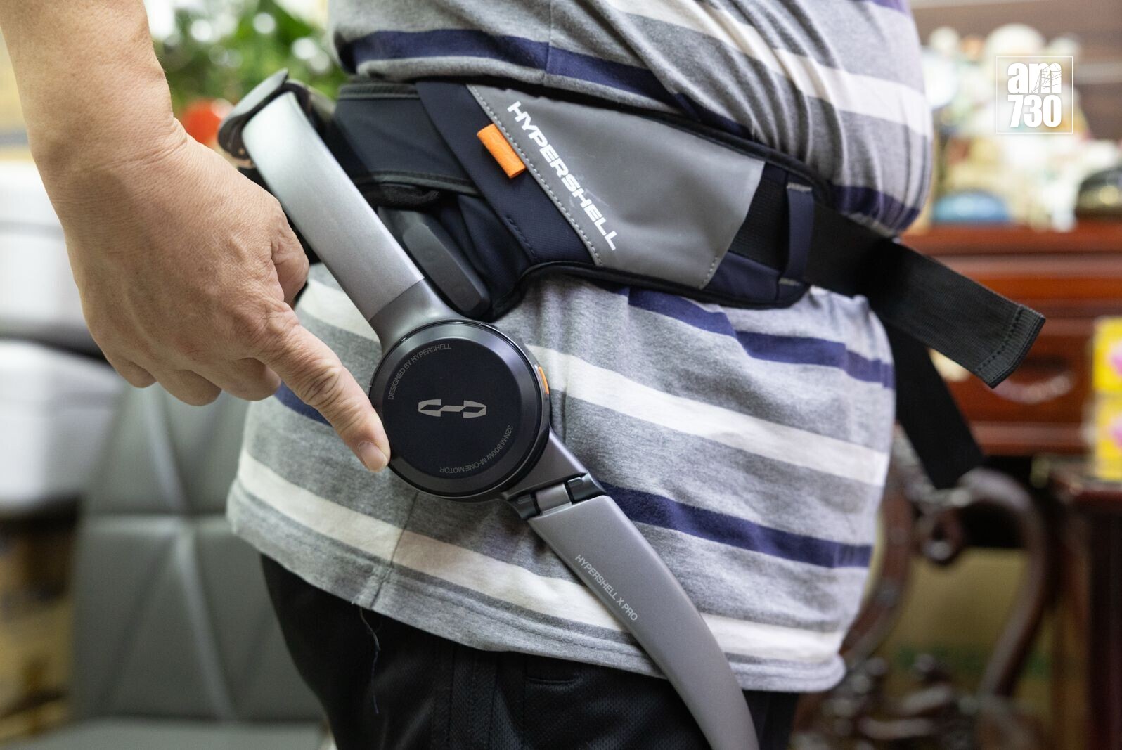 有機構借出「AI機械腿」,在行走和上落樓梯時提供動力輔助。(蘇文傑攝)