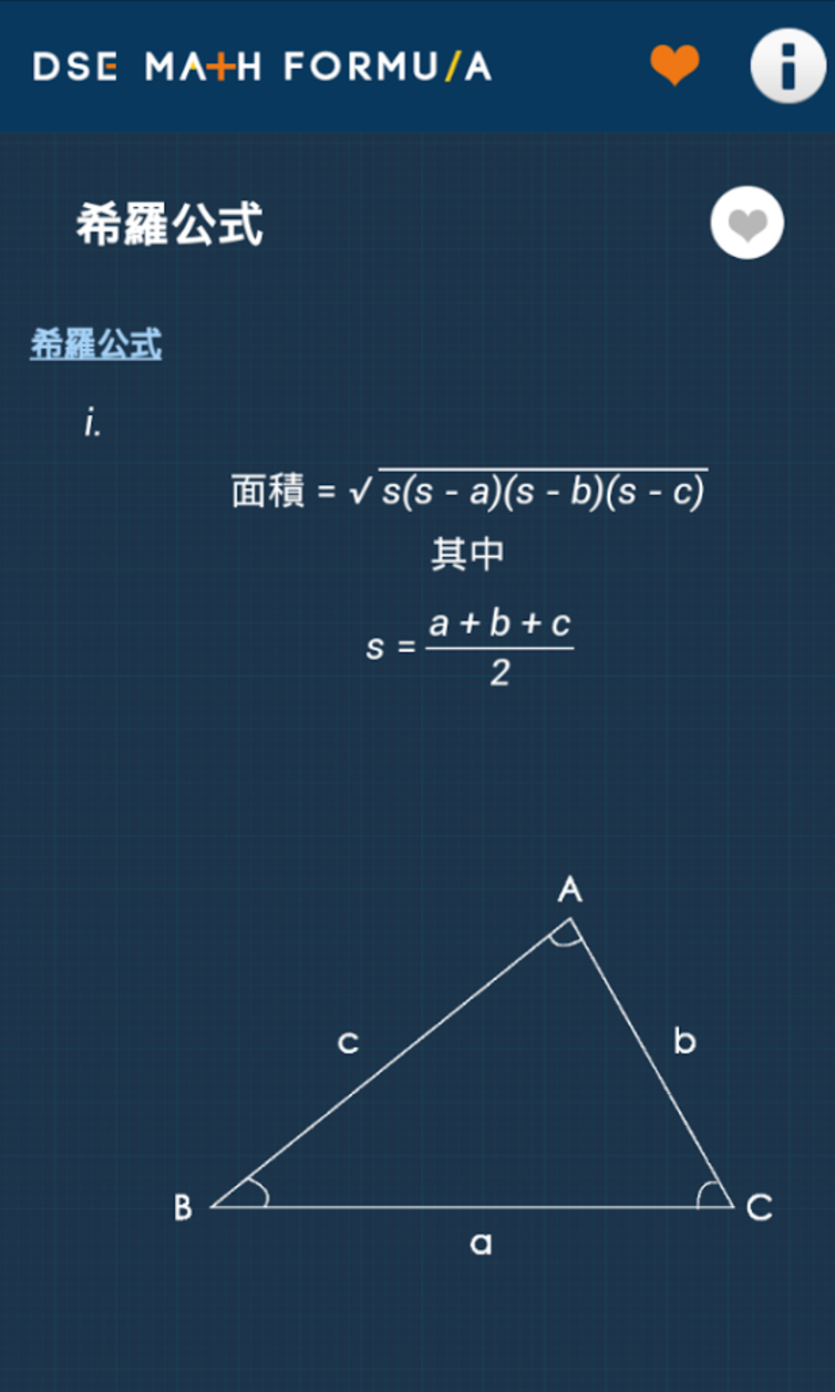 手機程式「DSE數學公式」專為預備香港文憑試數學科(必修部分)的香港中學生而設,同學們可以在程式內找出需要的公式和定理,而且附有圖片解釋,簡單易明。另外,也可以標記頁面作溫習用途。