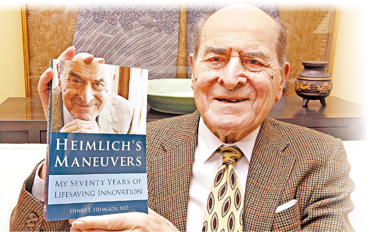Henry Heimlich 1920-2016 哈姆立克在2014年出版自傳,講述其發明的急救法。(美聯社)