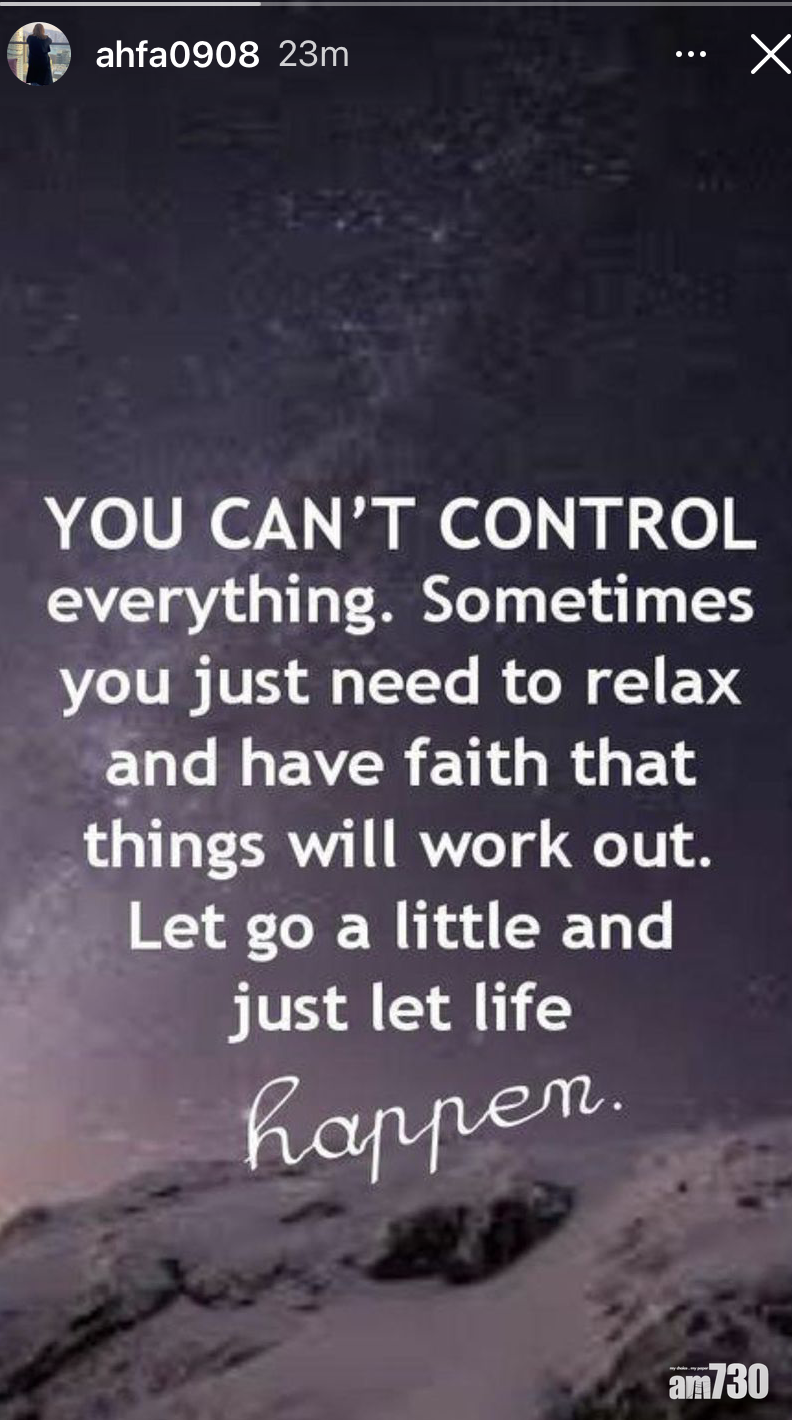 花姐凌晨在Ig限時動態以英文留言表示,你不可能控制任何事,有時候要放鬆及保持信念,相信事情會解決。