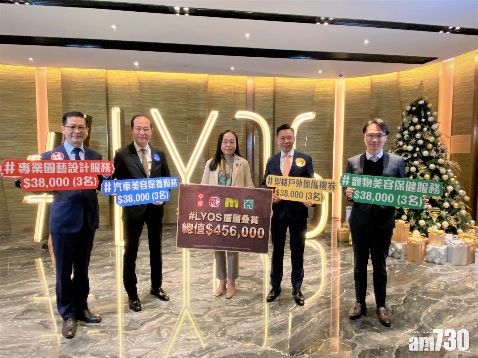 中原地產、利嘉閣地產及另外兩間代理攜手送出「層層叠賞」予#LYOS「層層叠趣」花園複式戶買家,獎賞總值約45.6萬元。