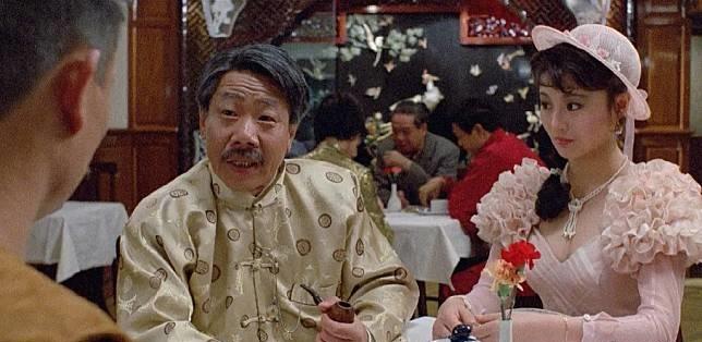 黃蝦(中)在《殭屍先生》中演任老爺一角,並找林正英(右)搵風水地。
