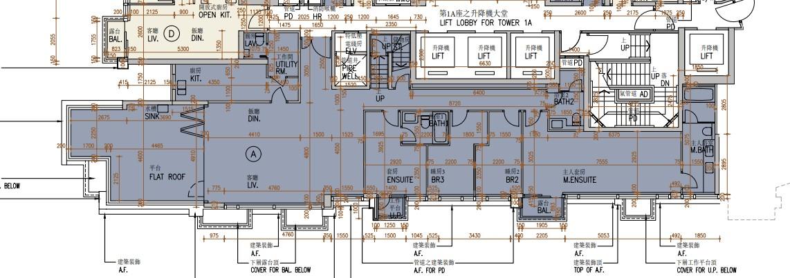至於餘下2伙採招標形式發售,為1A座38樓A室,實用面積1,708方呎,連265方呎平台及747方呎天台;另為1B座38樓A室,實用面積15,70方呎,連258方呎平台及636方呎天台;上述2伙同屬頂層四房間隔。